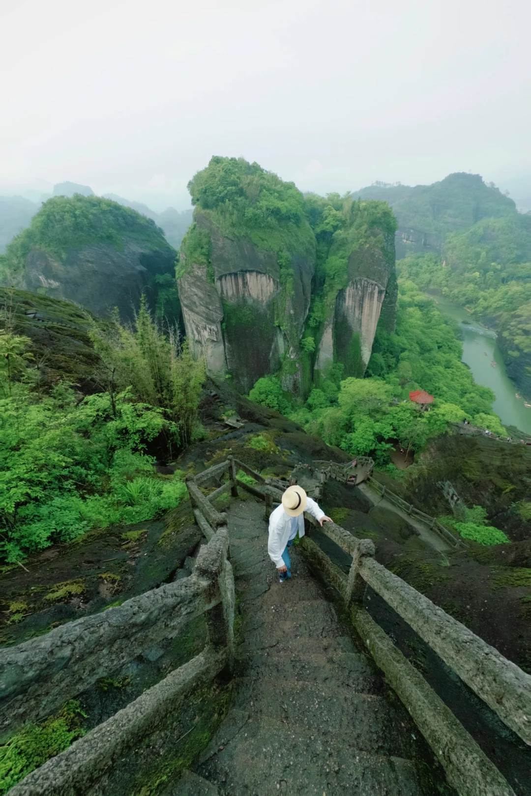 单独一个点需要打车过来,也是武夷山观日出云海的打卡地,寺庙旁边还有最出片的绿色台阶治愈幽静氛围感拉满很有电影画面感