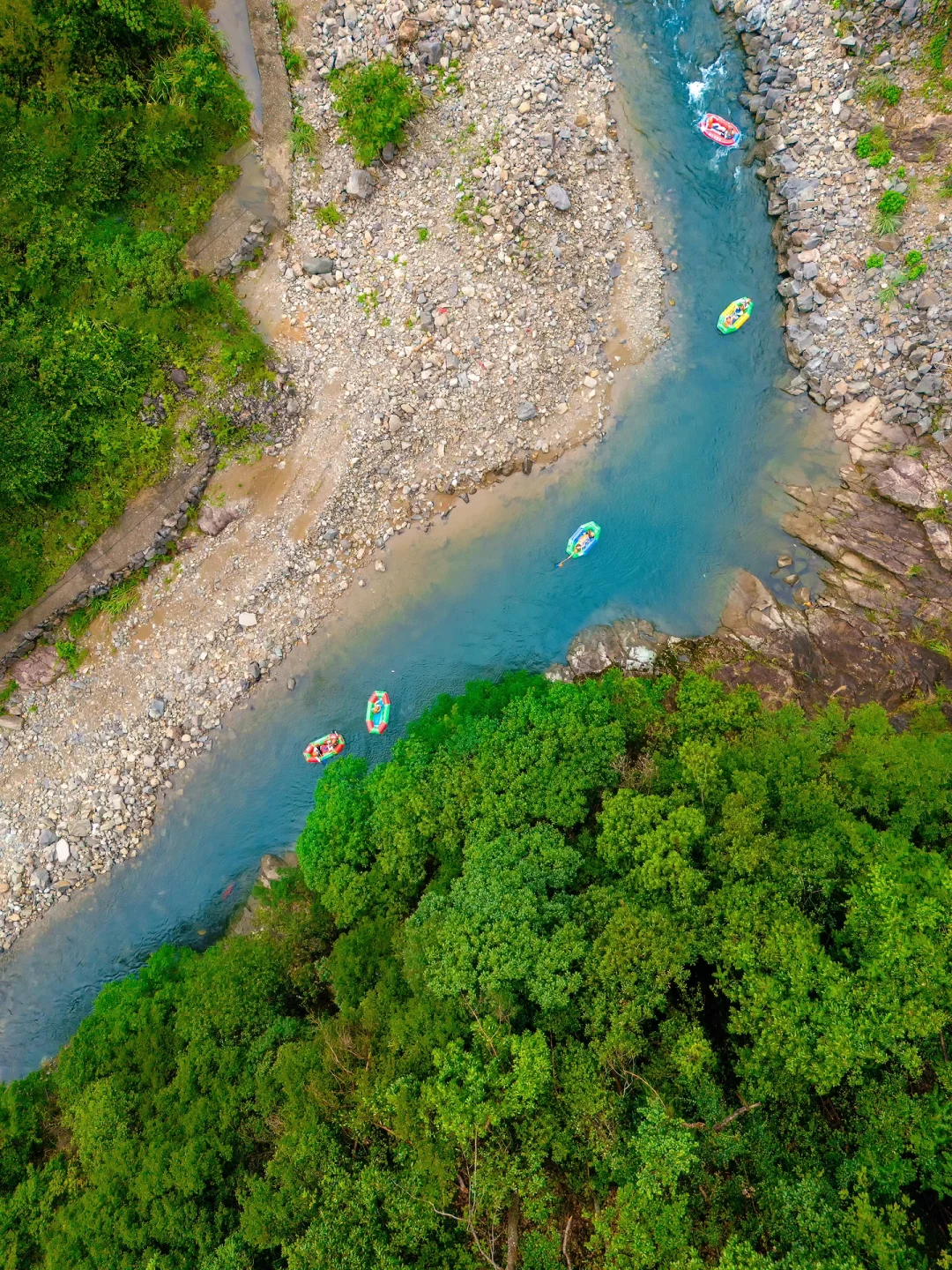 全程大概2小时,河道全长4公里,落差108米 。一开始,平缓的水流会带你悠悠地欣赏两岸的青山绿树,像是走进了一片绿色的童话世界。紧接着,湍急的水流就会给你带来心跳加速的刺激,尖叫声此起彼伏,尽情释放你的激情吧。