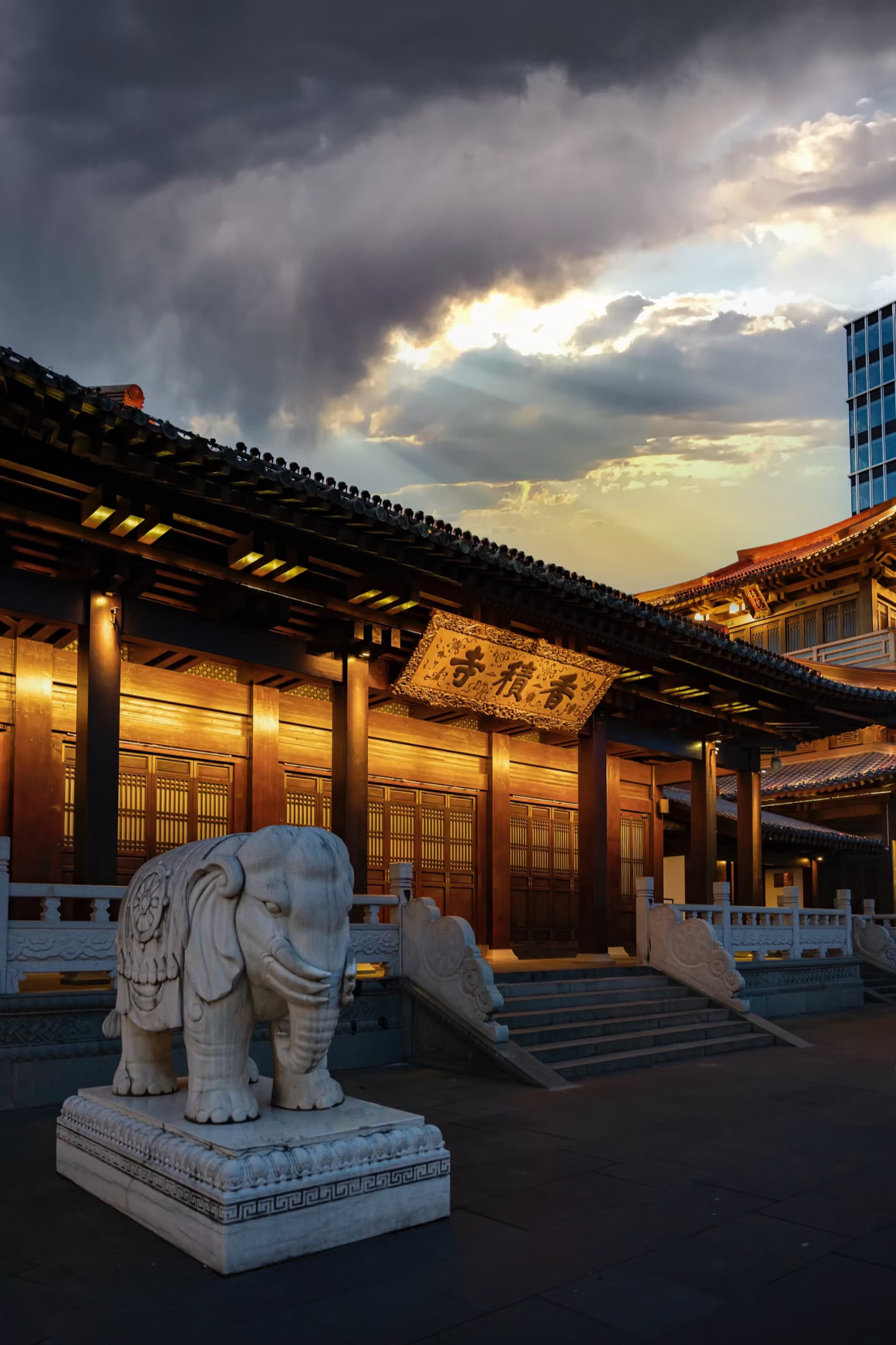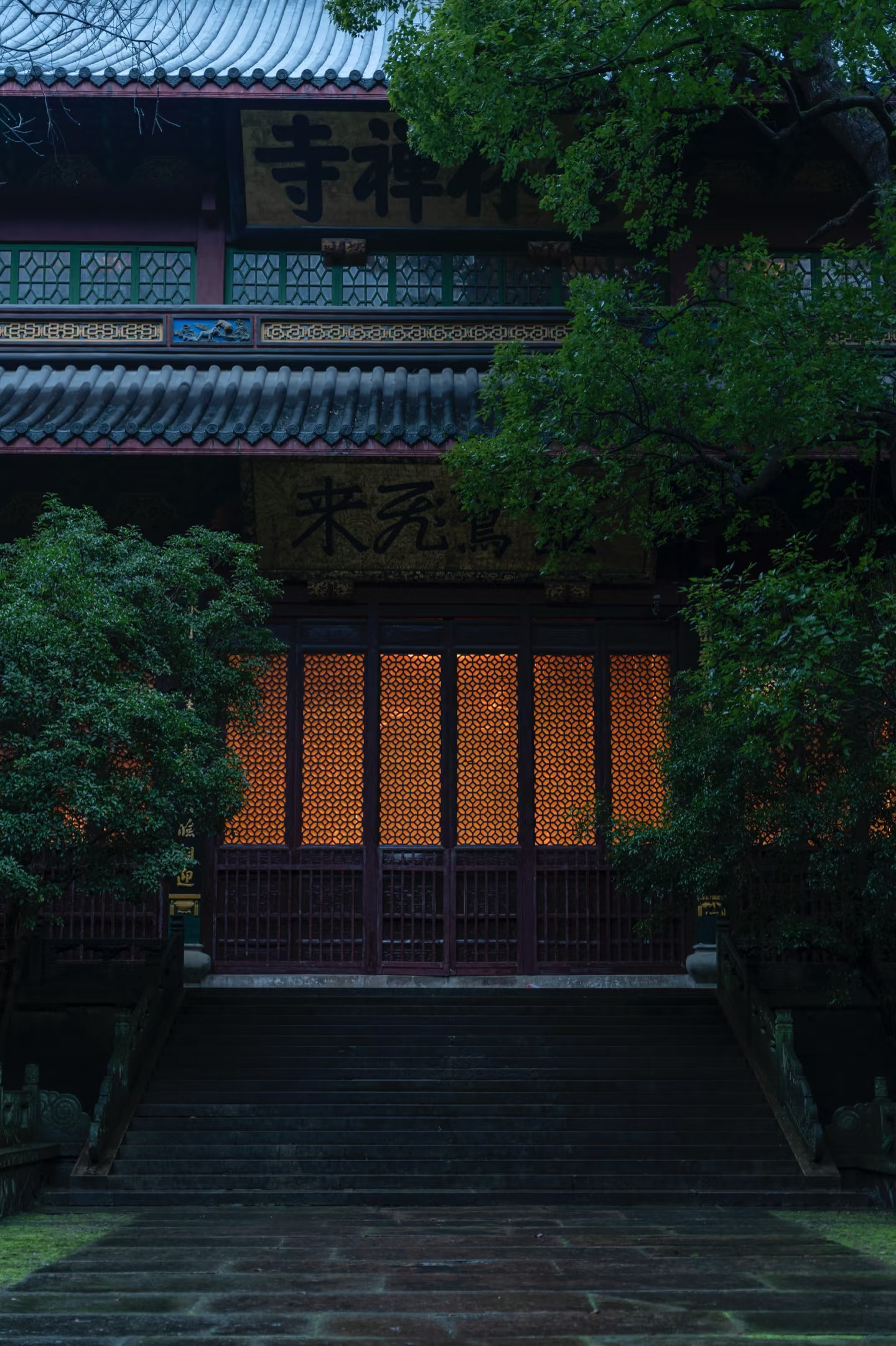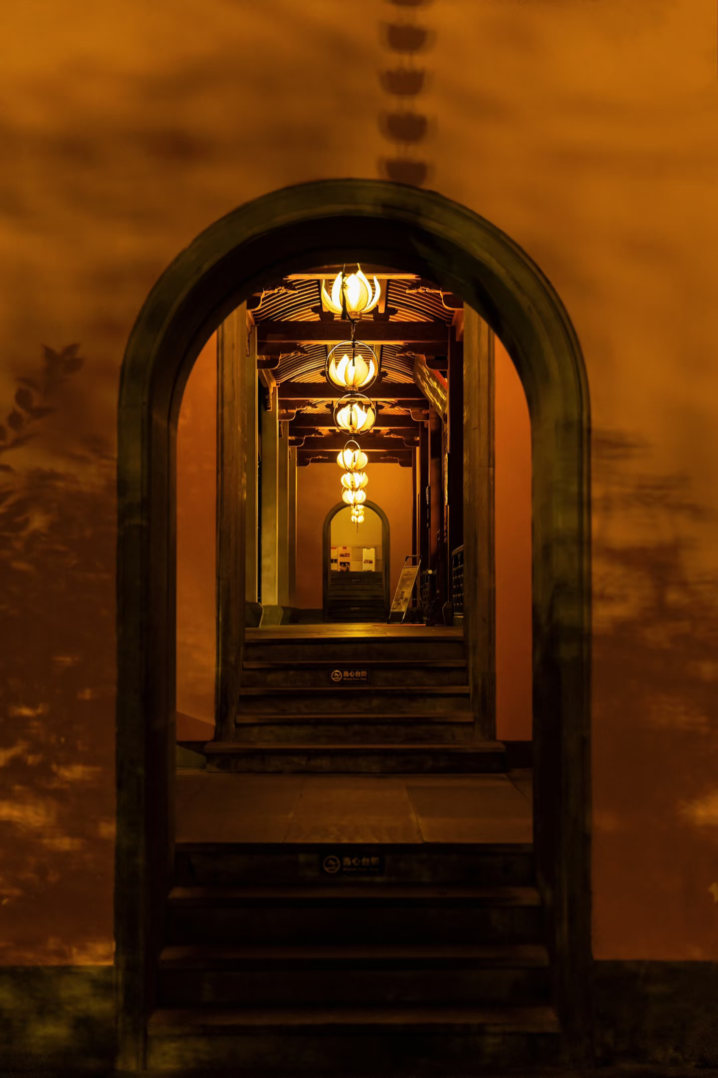 暮色下香火余味混着草木香,昏暗的灯光下一切都更有禅意,有些许诗中承天寺夜游的意味