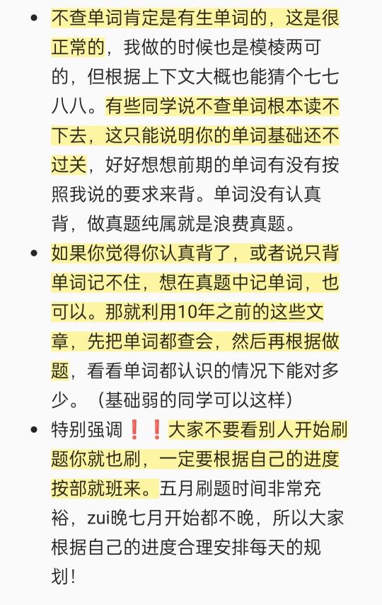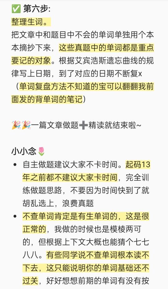 把文章中和题目中不会的单词单独用个本本摘抄下来,这些真题中的单词都是重点要记的对象。根据艾宾浩斯遗忘曲线的规律写上日期,到了对应的日期不断复x(单词复盘方法不知道的宝可以翻翻我前面发的背单词的笔记)