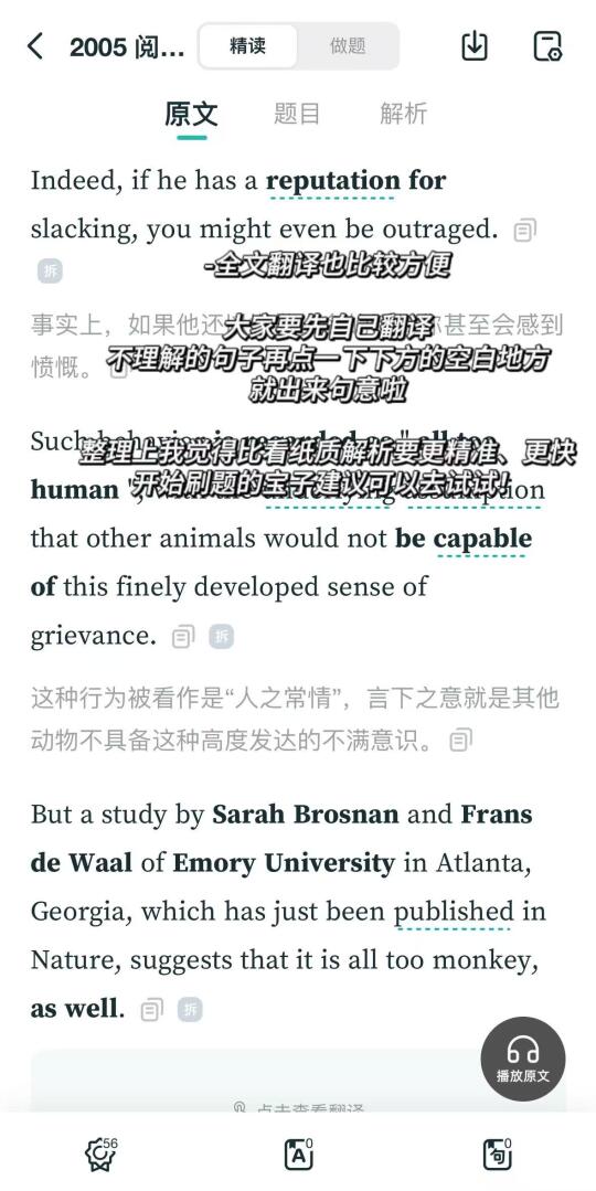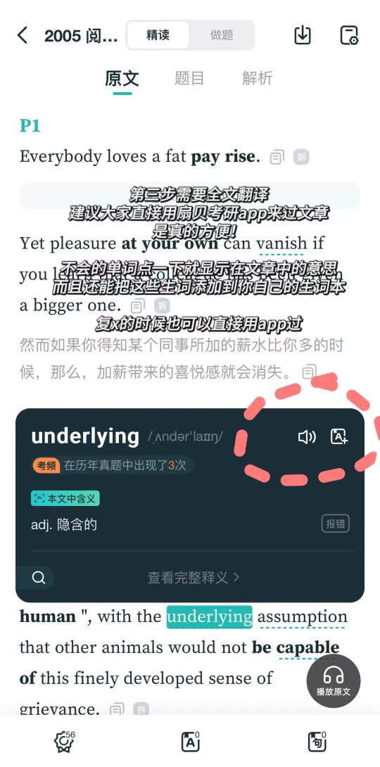 全文翻译。对着解析或者app把文章过一遍,把不会的单词意思标注在文章中。