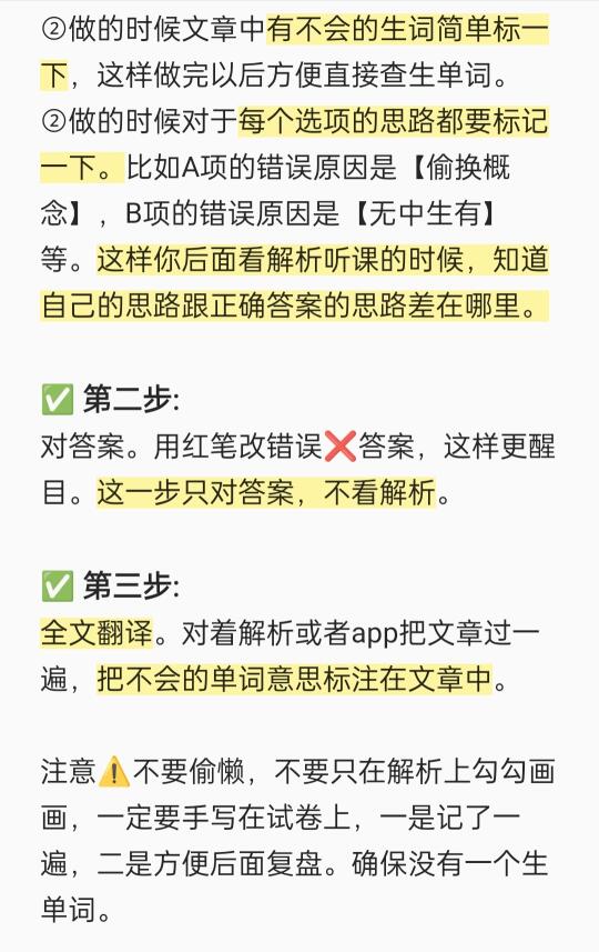 查完单词后,再来看错的题目,只看错的题目。这个时候已经知道全文意思了,也知道正确答案,看看错的题目是否理解。
