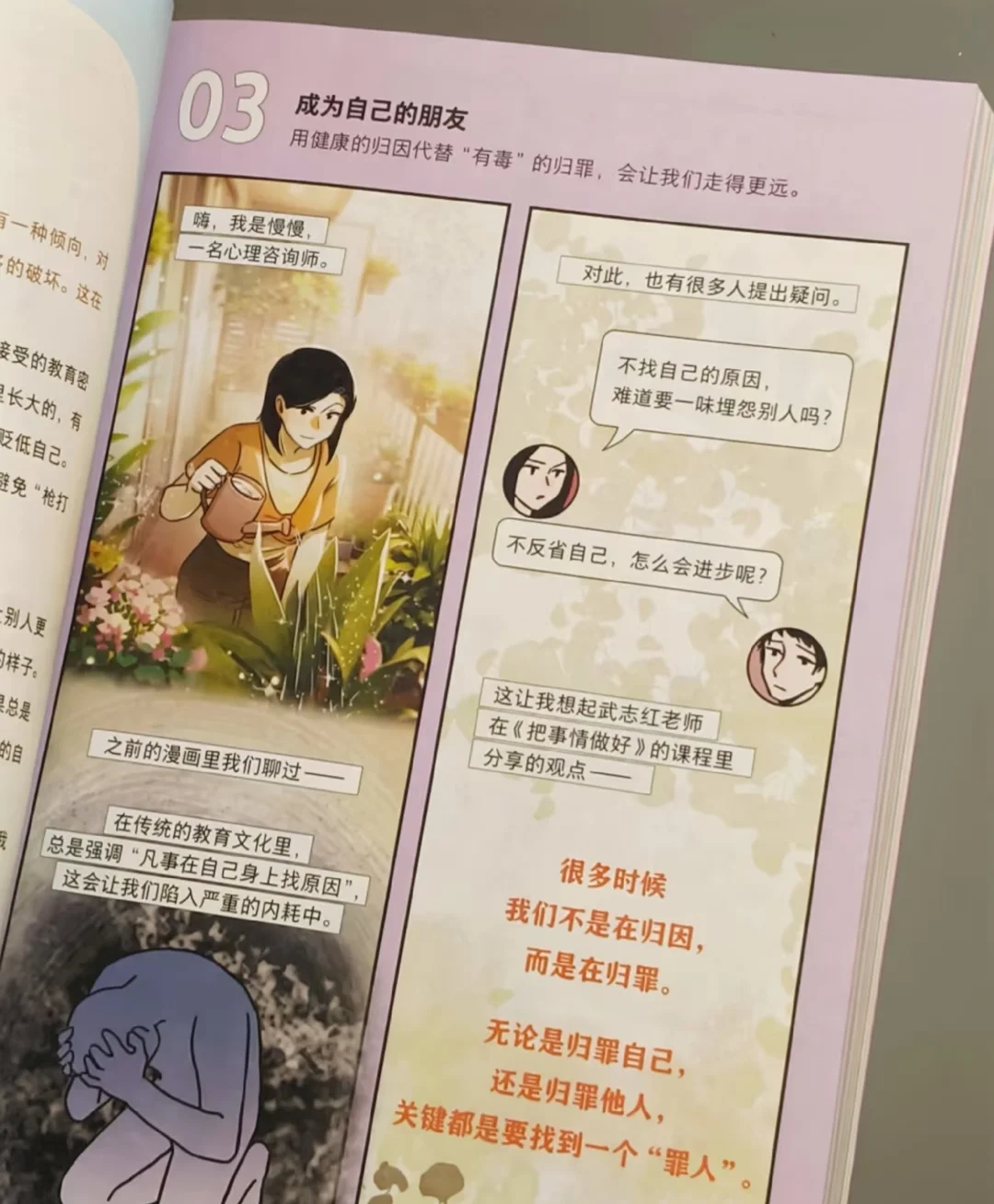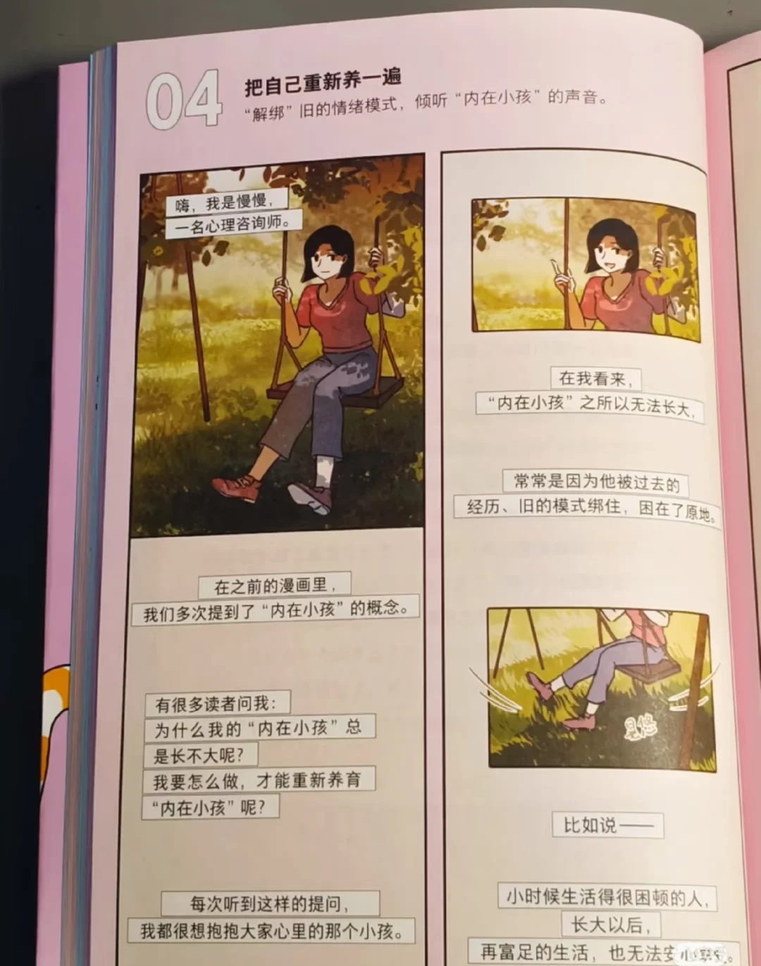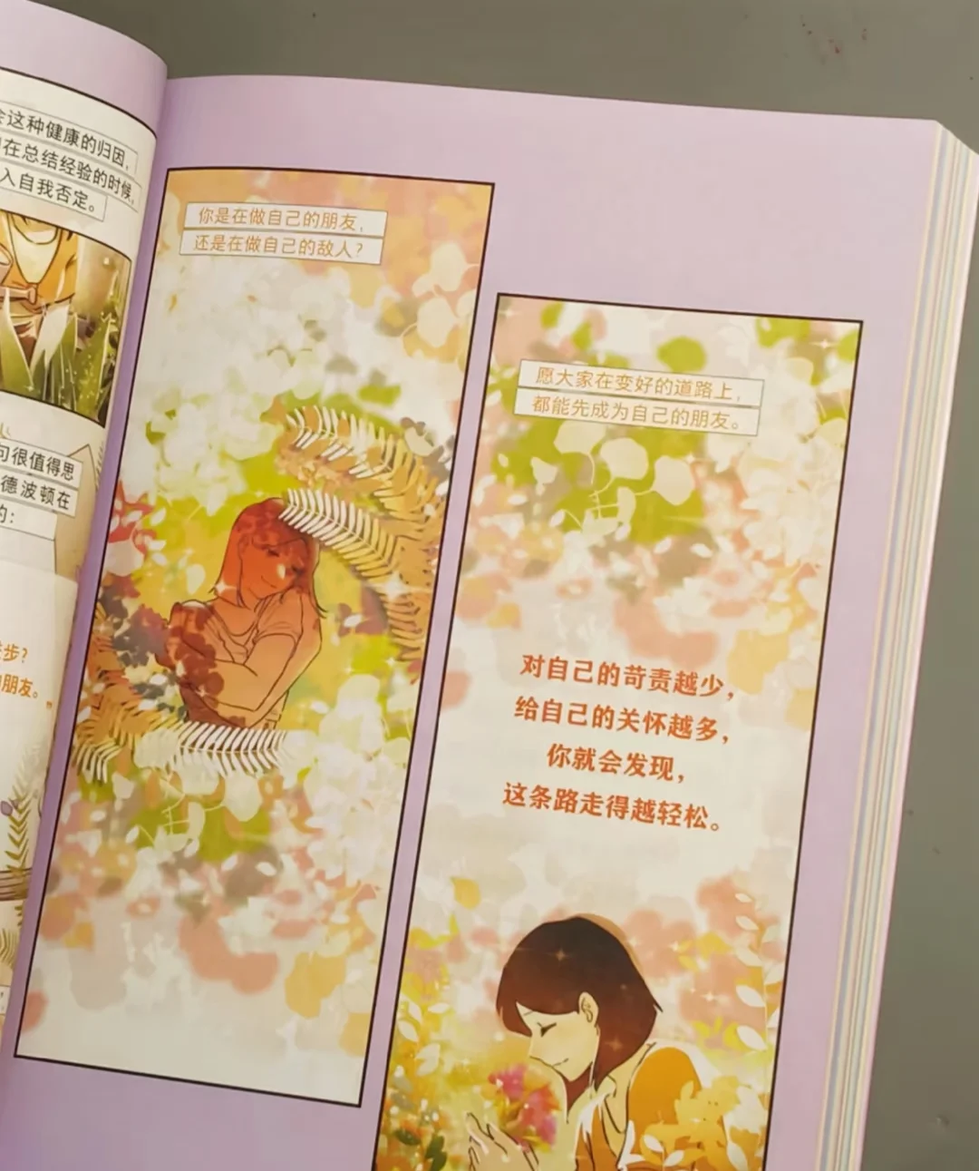 📍“在这个世界上,钱很多,好的工作、学校、对象很多,然而我“我”只有一个。任何一个目标都不应该来奴役我压榨我,而应该是来服务我的。” ——————🎄 周轶君说,很多年轻人抱怨生活没意思,不知道自己到底喜欢什么。 / 🙃这也许是消费主义造成的后果。因为我们从小就被告知,人生的目的就是按部就班地读书工作赚钱,而不是在这个世界上创造什么。 / 🙃消费主义用各种手段诱导和迫我们花不必要的钱,同时为了能支付高昂的生活成本,又不得不把自己投入到繁重的工作中,将人变成机器。更可怕的是我们的精神世界也因此变得荒芜,没有心力去思考和寻找真正想要的的人生。 / 🙃回想我们大多数人都是在安全、从众的选择中度过的: 努力学习是为了上好大学,上好大学是为了找一份体面的工作,然后努力攒钱、买房、结婚、生子,然后再给子女攒钱.… 在这样的生活模式中,人的内心很难找到自己的力量源泉,去支撑自己真正想追求什么、实现什么。 — 😌所以警惕消费主义陷阱,其本质是向内探寻内心,找到自己的人生支点。 希望大家都能时刻提醒自己,保持精神的丰盈和完整,要寻找自我,不要随波逐流不要糟蹋它~ ————🌷 这和我最近在看的心理学绘本《我喜欢这样的自己》讲的如出一辙: •“社会给的巨大目标(百万年薪/学历/甜蜜的婚姻/减到90斤…),会让自我变小,个人会被社会裹挟被牵着鼻子走。” •“在这个世界上,钱很多,好的工作、学校、对象很多,然而我“我”只有一个。任何一个目标都不应该来奴役我压榨我,而应该是来服务我的。” / 📘这本心理学书 不是鸡汤,不是大段的心理学理论 而是真实发生在咨询室里的18个心理困境故事 - 💬它有点像你情绪低落时的急救本,也可以把它当作“重新成为自己的朋友”这件事的第一步 ———🌷 你要明白,就算你不“完美” 你依然可以慢慢地狠狠地爱上自己 就算不那么好,也可以被喜欢,也值得被善待 🌷“走在一条自我救赎的路上吧:我可以,我选择,我负责。” 🌷“去做一件能让你全身心投入的产生心流的事,越多越好。” smart is new sexy! 一起加油(ง •̀_•́)ง,共勉之~ [萌萌哒R]欢迎关注,这里会: [一R]日更闪光金句/经典书摘 [二R]来这世间一趟,要看看太阳呀 [三R]适度思考,链接现实,好好开干!