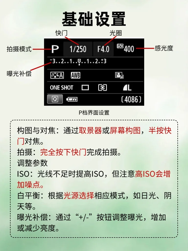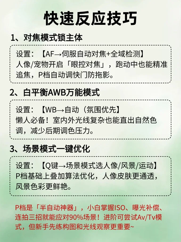 嗨喽,宝子们! p档是一个很适合初学者使用的档位,相机会自动设定光圈和快门,手动调整ISO、白平衡等其他参数📷 适用于日常拍摄以及旅行等需要快速反应的场合😎