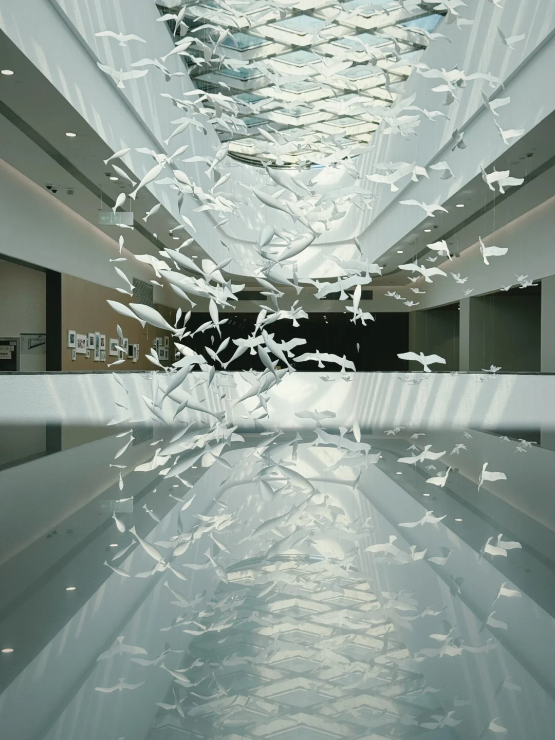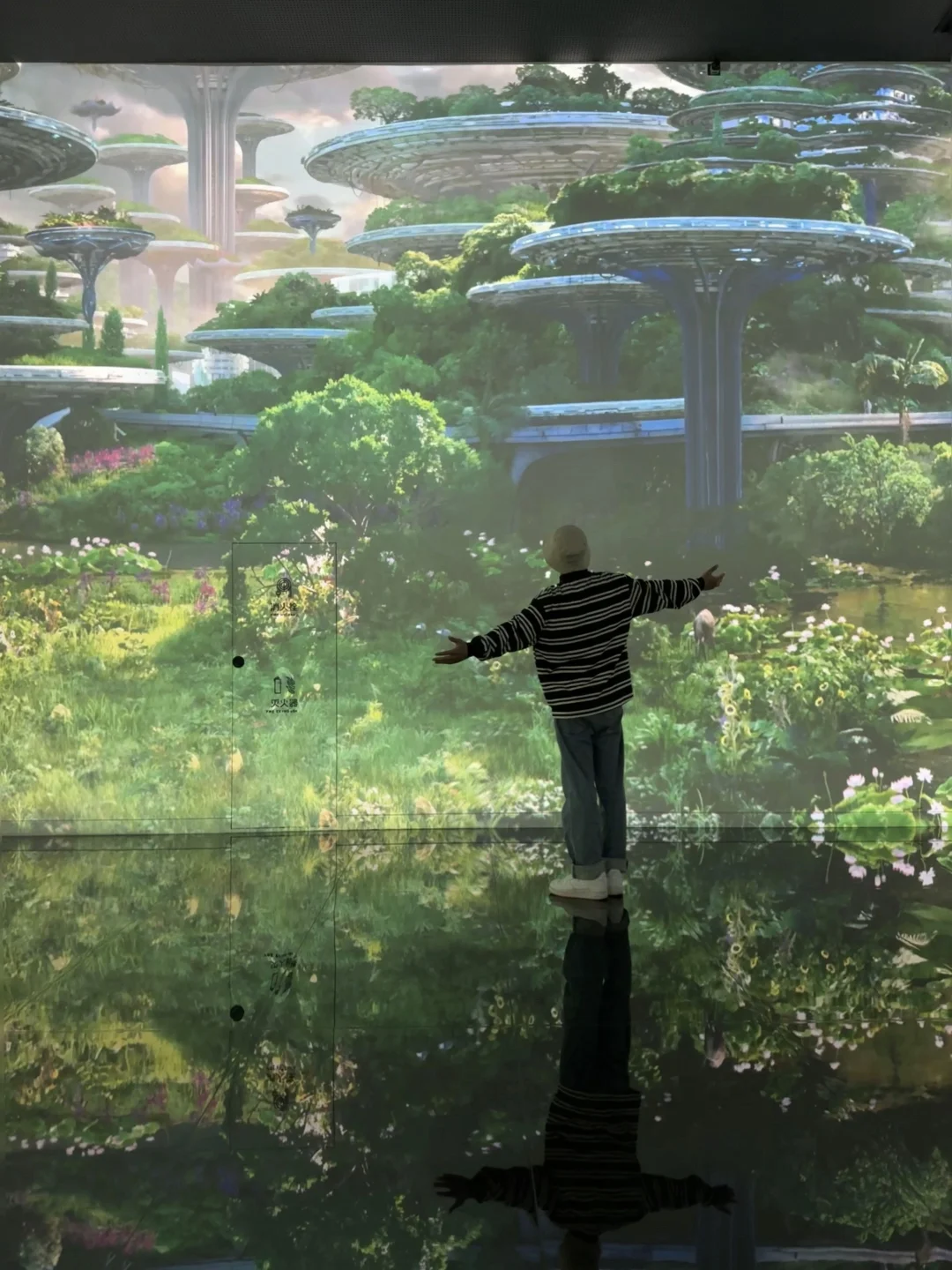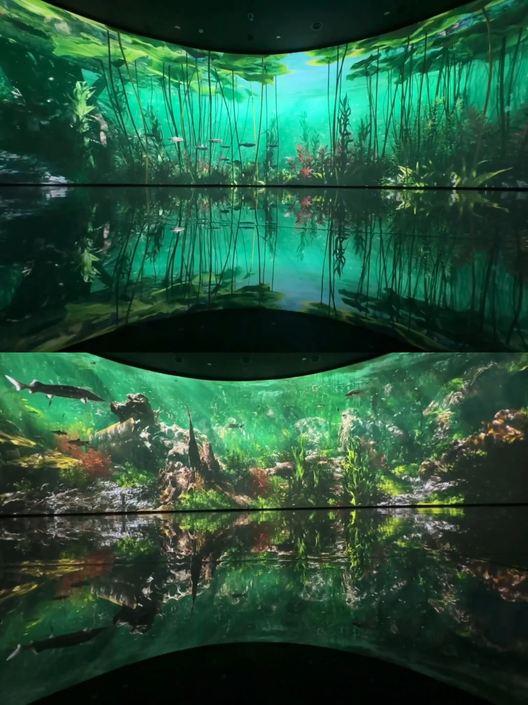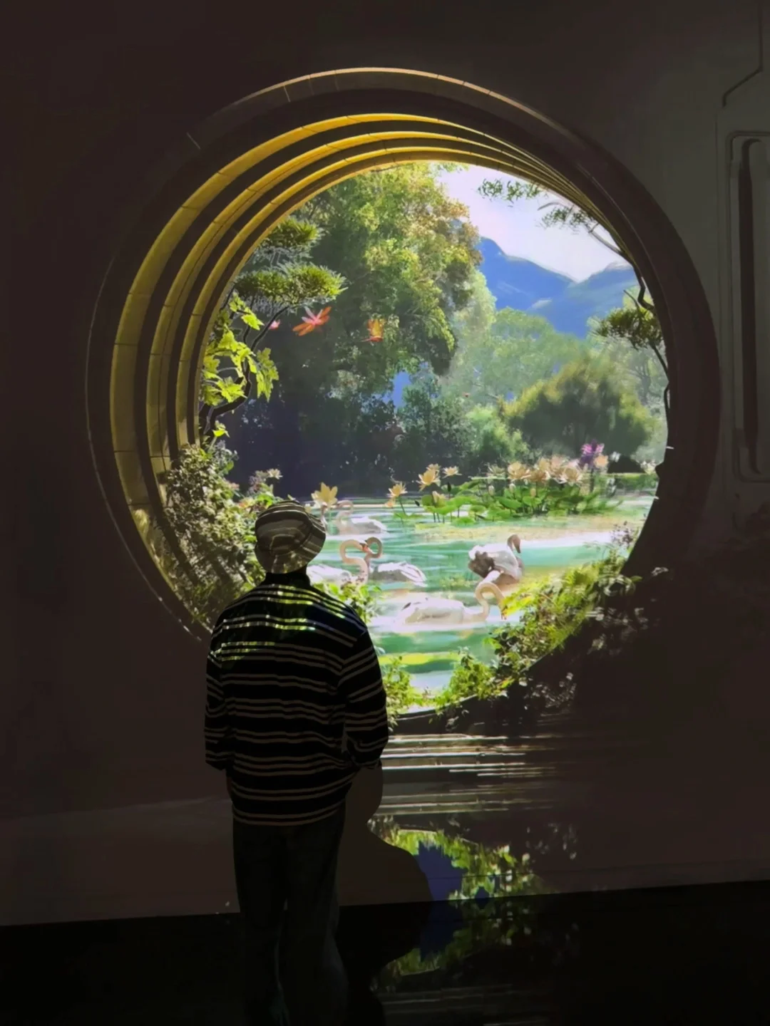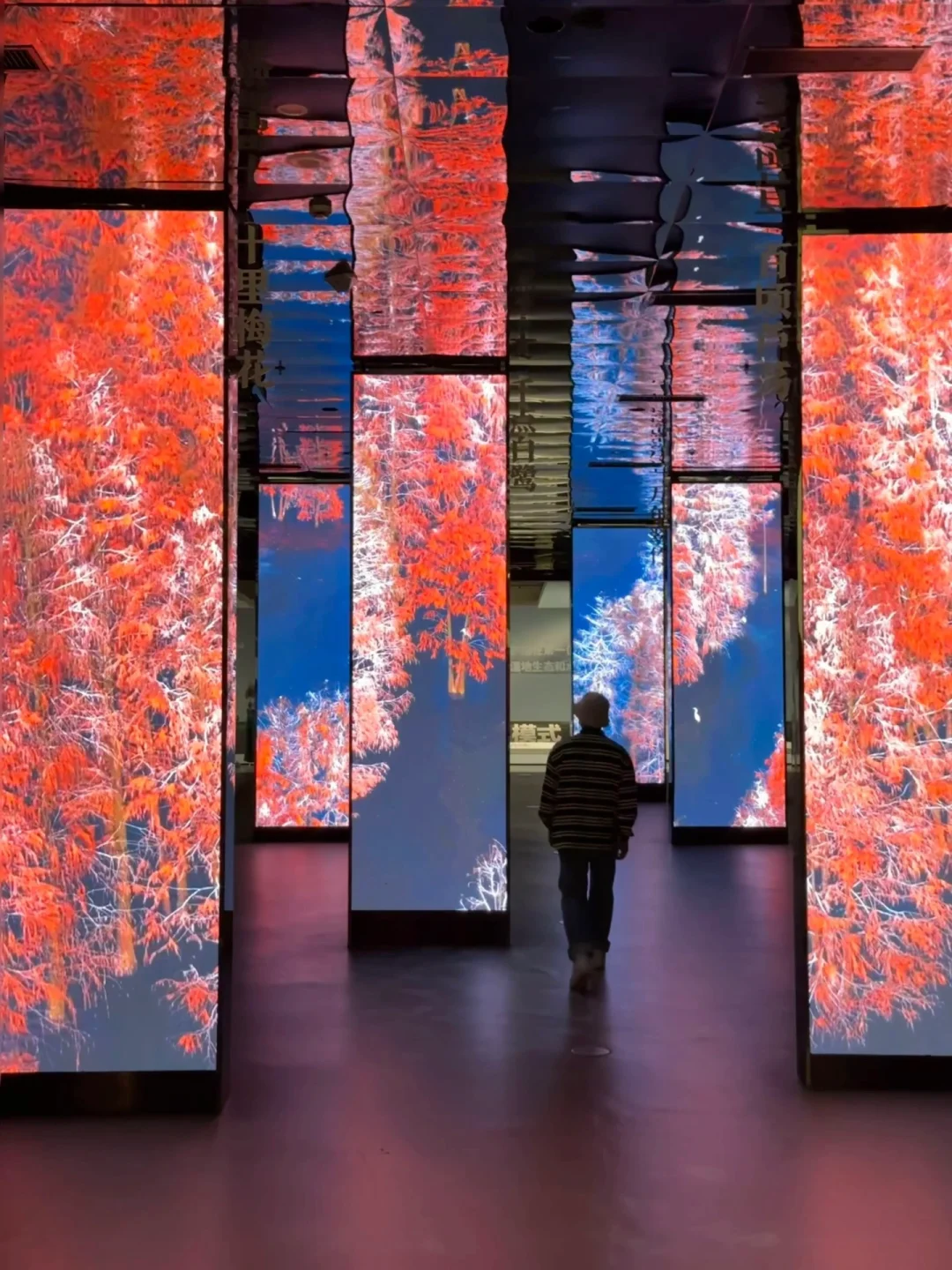 博物馆的亮点入口处是一个数字瀑布,巨型水幕缓缓落下,壮观又充满神秘感。掀开幕布是360度环绕式的数字互动展厅,可以沉浸式体验不同的场景仿佛沉浸式穿越全球湿地