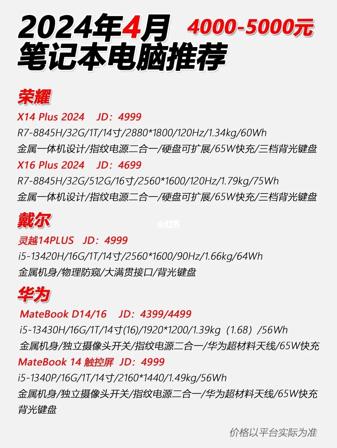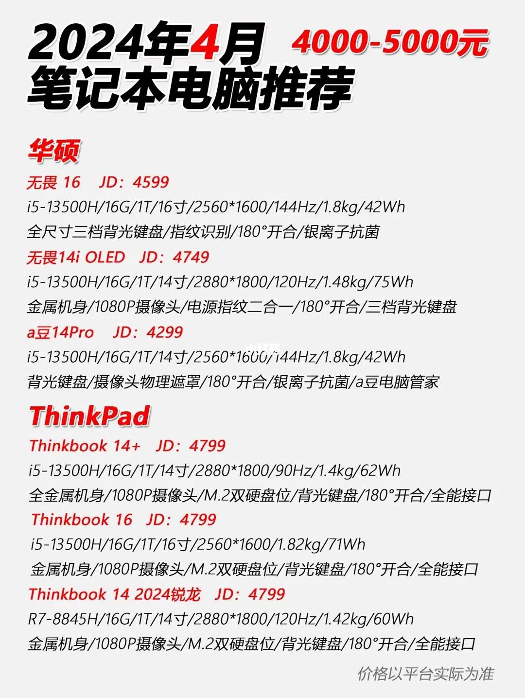 其他如戴尔灵越14Plus,华硕a豆pro ,无畏14i,联想小新Pro14或thinkbook14+等价格也比较稳定,而且配置上表现都比较优秀,都非常适合入手。