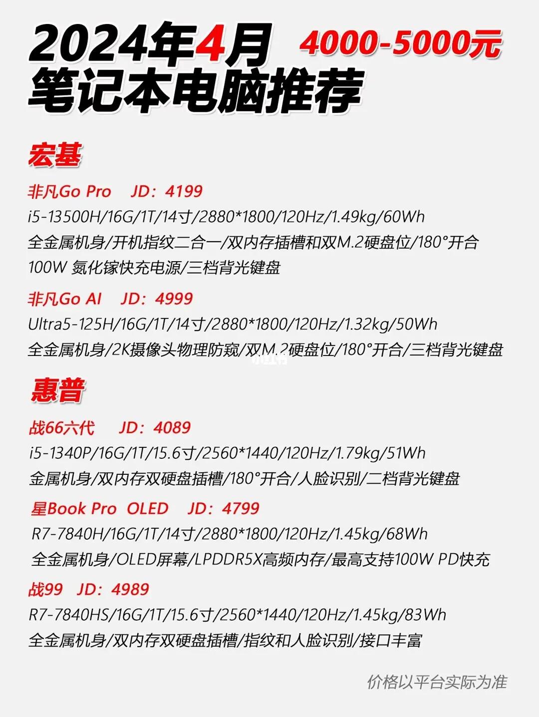 惠普整体价格比较稳定,战66六代i5-1340P机型在4000价位,2.5K屏120Hz高刷,对于有小键盘,网课学习,追剧电影的小伙伴来说还是挺不错的。