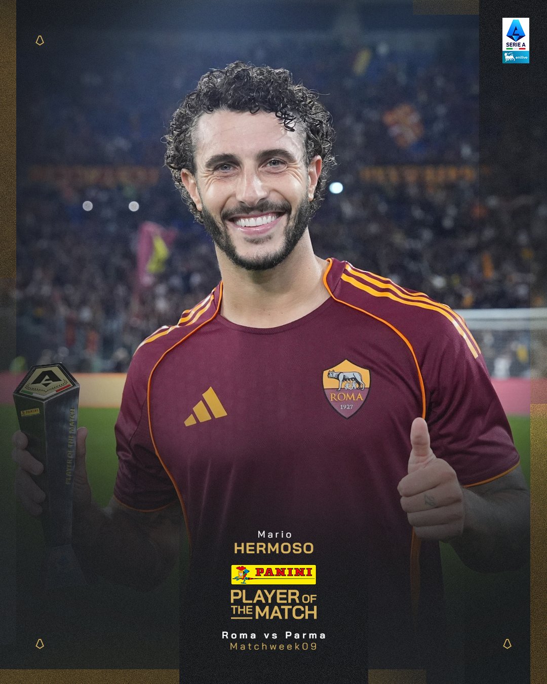 虎扑10月30日讯在刚刚结束的意甲第9轮比赛中,罗马主场2-1战胜帕尔马,继续排名积分榜第二位,西班牙后卫埃尔莫索在比赛中攻入一球,赛后他也当选了意甲官方评出的全场比赛最佳球员。