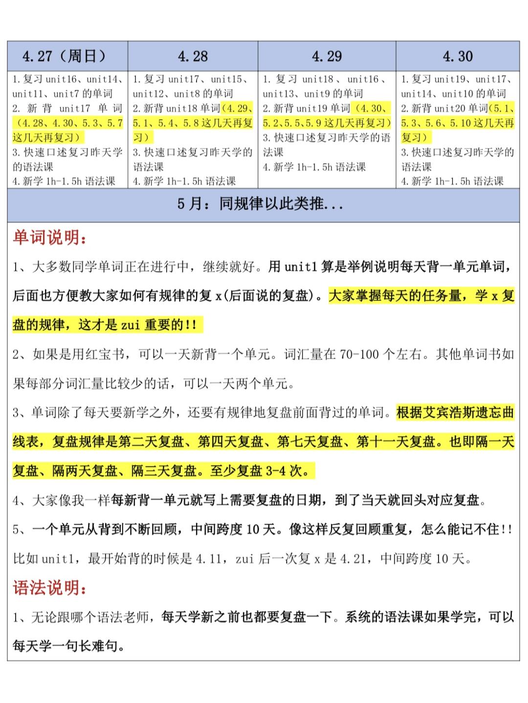 四月的重点是单词和语法!!这两项都很重要,尤其是单词,前期基础打好,背的时候踏实一点,扎实一点。等到后期刷阅读真题的时候才能稳步提升!不再多花时间在这些基础单词上。