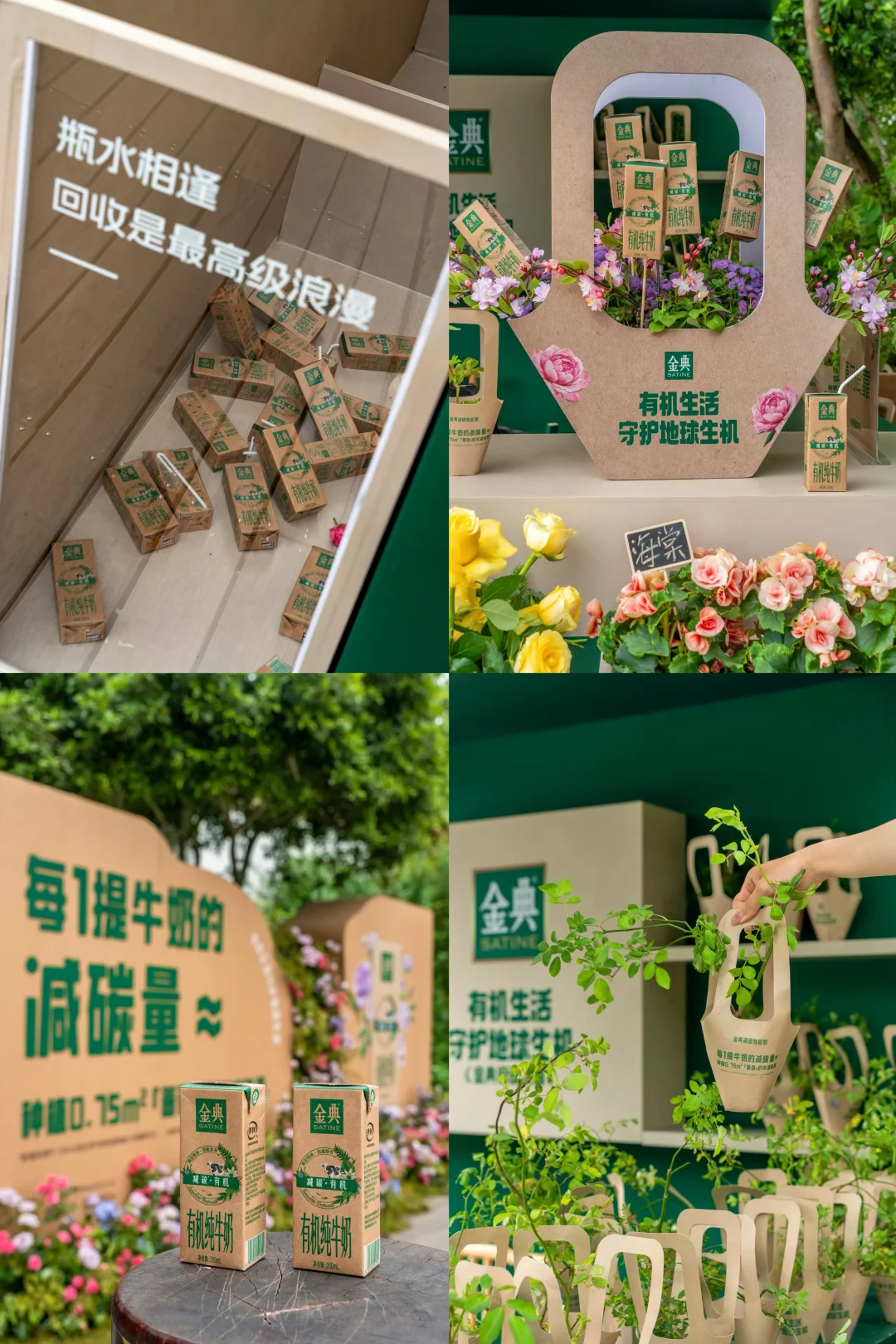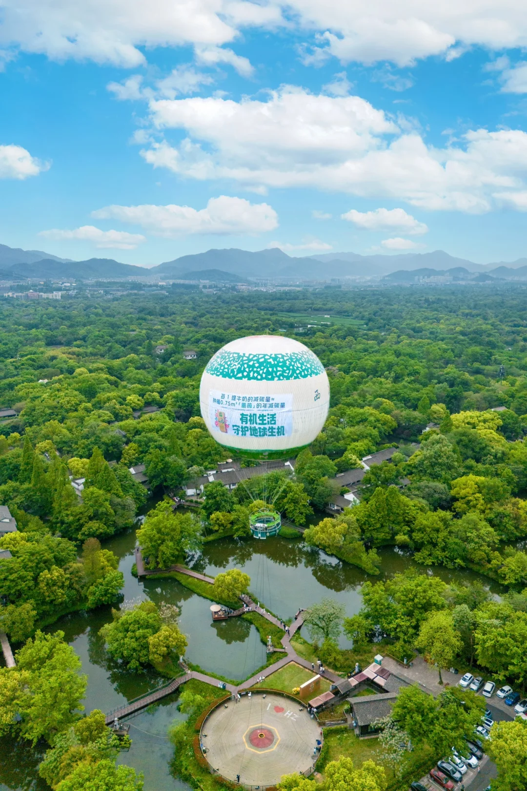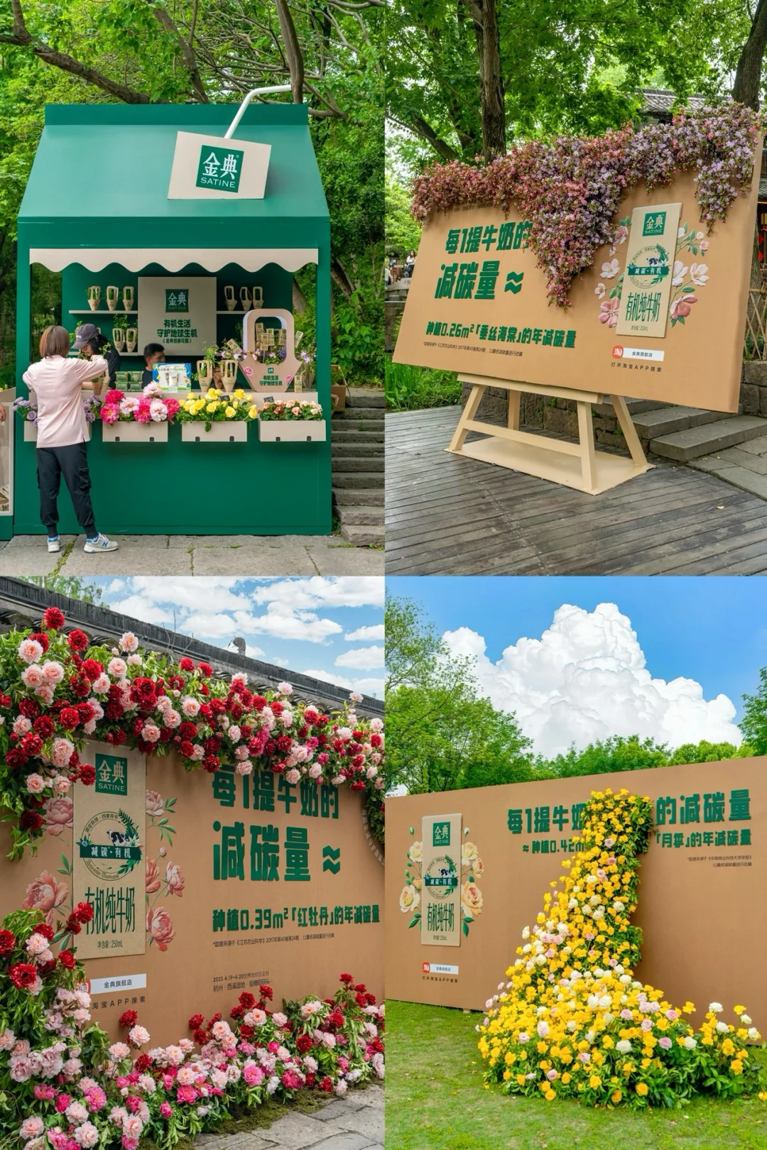 不仅有回收牛奶盒再生广告牌,还可以乘坐金典低碳花船欣赏西溪湿地的美景,除了欣赏美景外,还有超级有趣的环保问答互动环节,可以领取花卉种植礼盒;让我们一起坐上氦气球,承载金典的“可持续浪漫”~