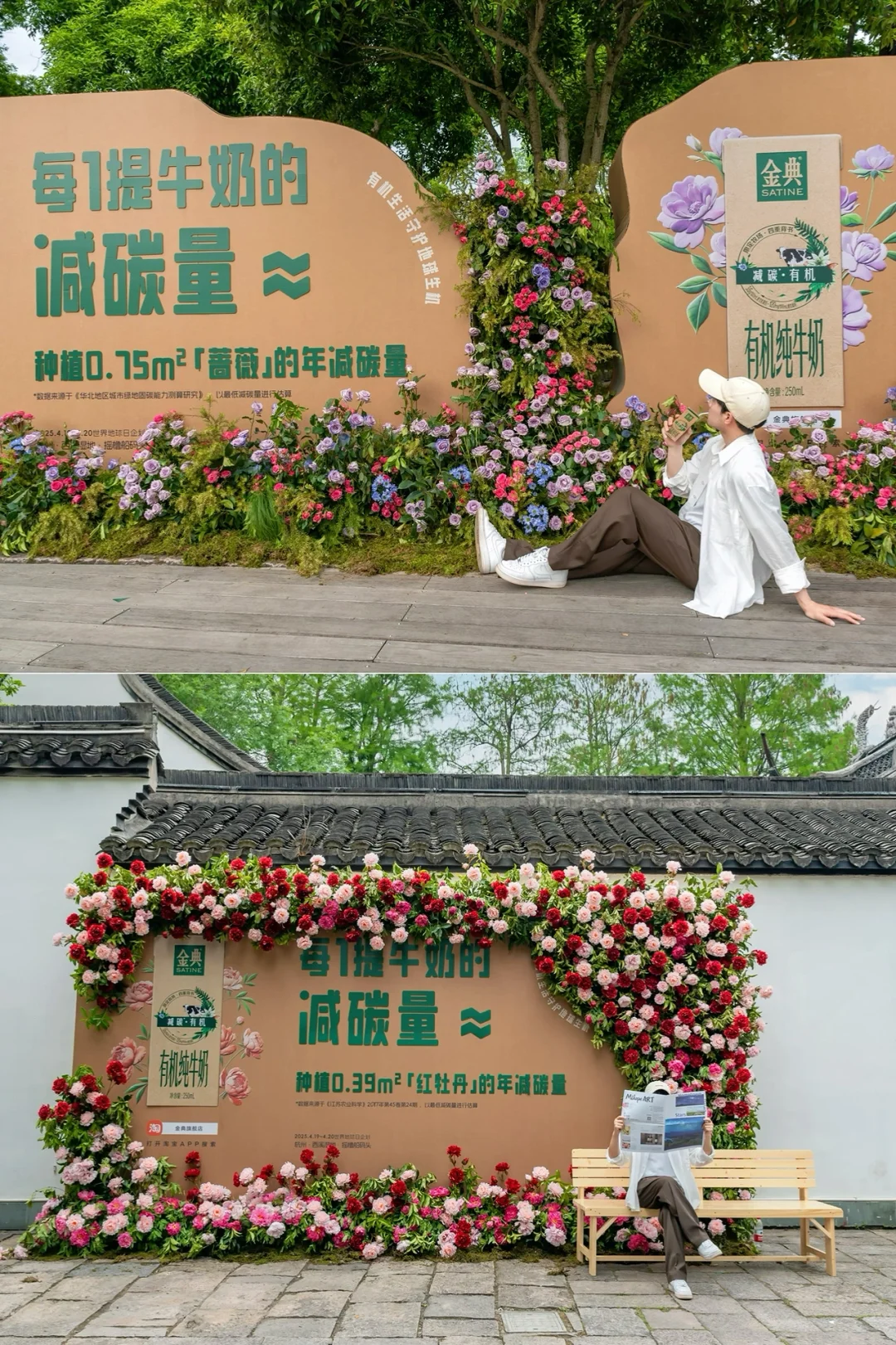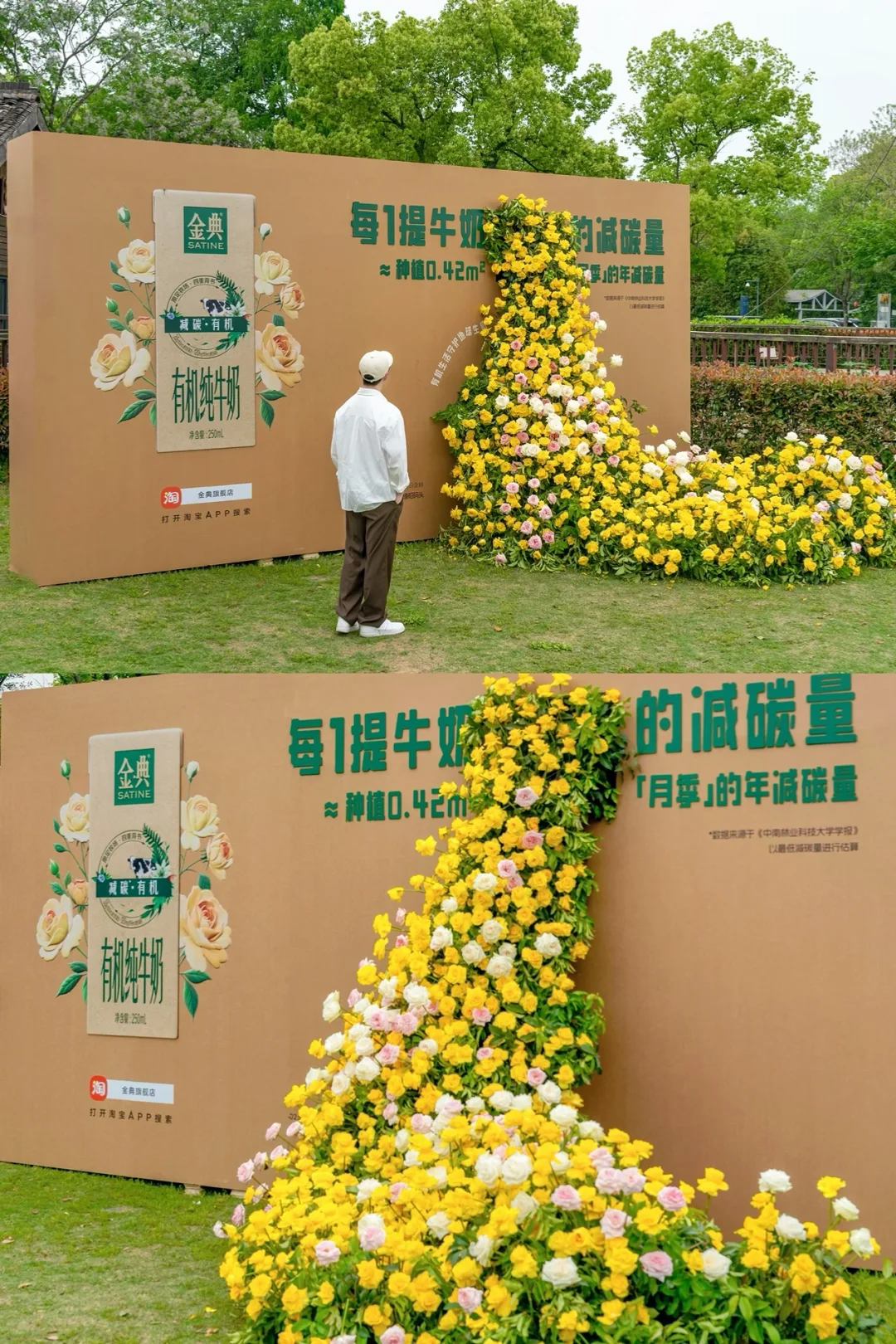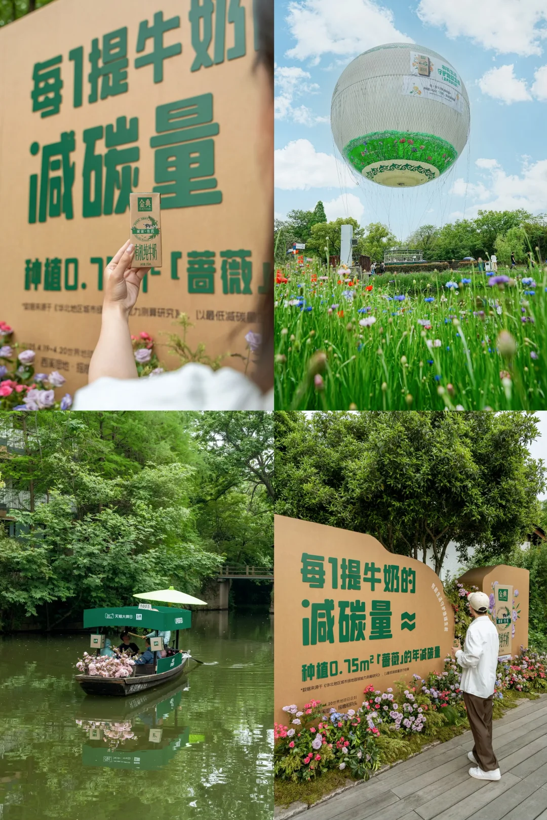 在西溪湿地游玩还偶然遇见金典低碳花园,参加了一场关于“减碳”的浪漫之旅,每一提金典减碳有机奶的减碳量,相当于为地球种下0.75㎡蔷薇的年减碳量。