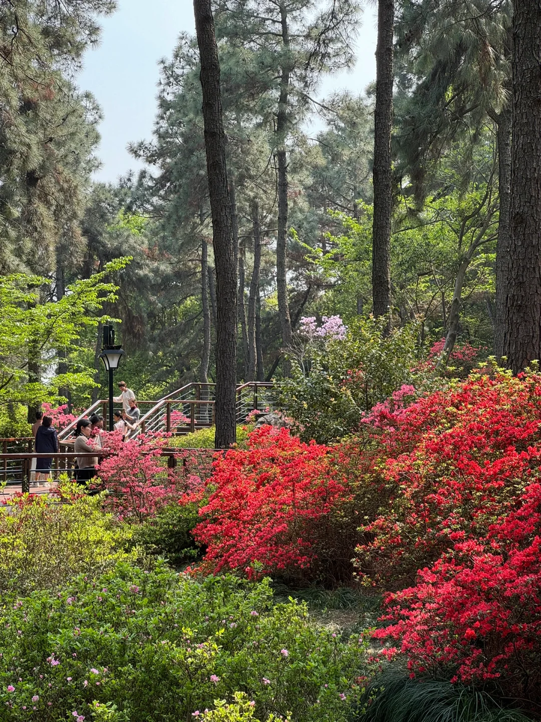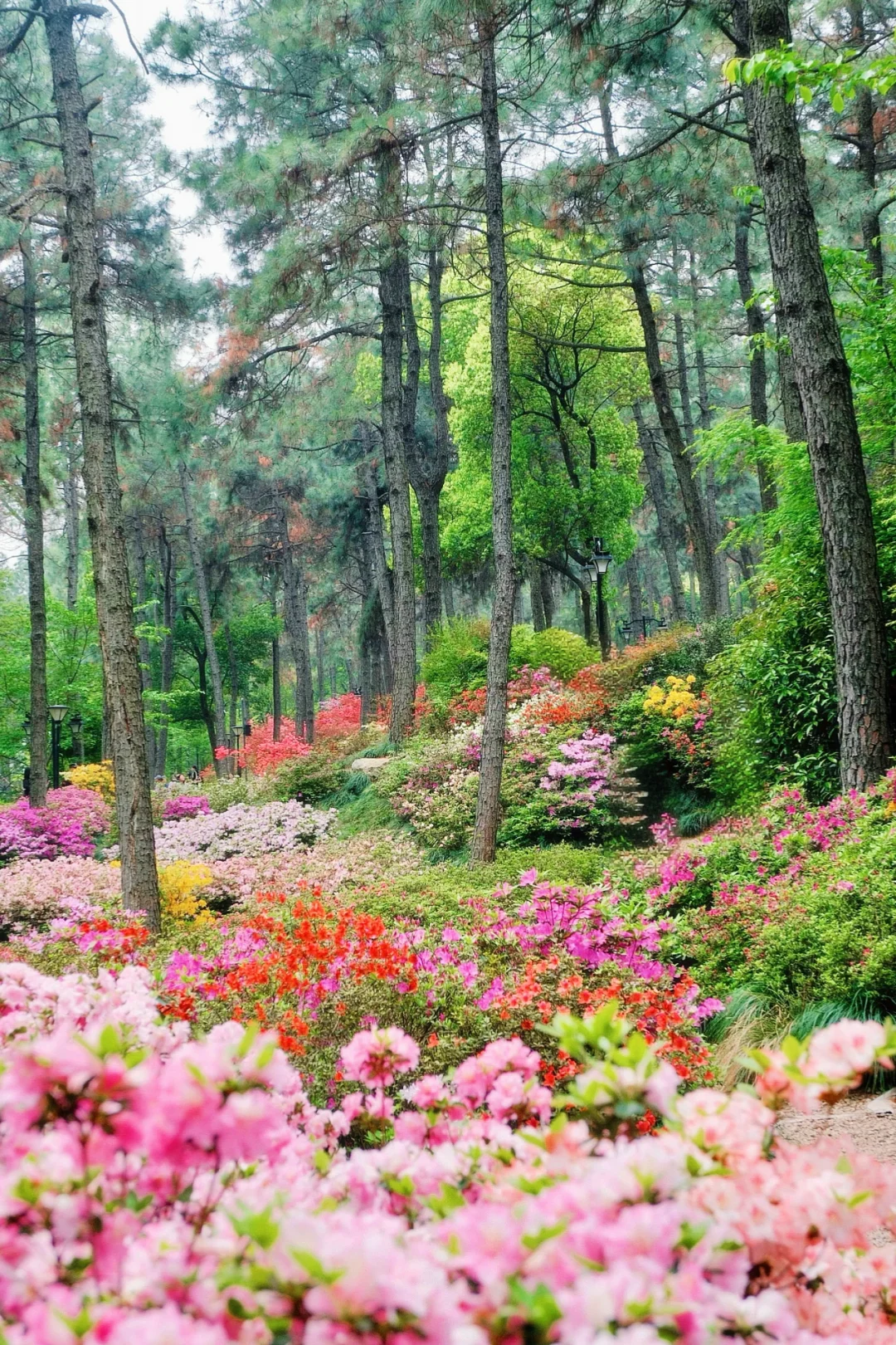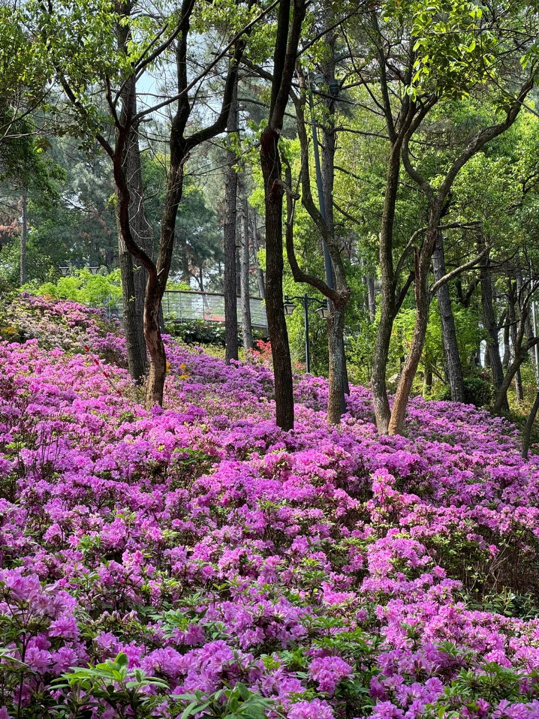 🌳杜鹃园:这是本次打卡的核心区域,3万平米的园子内300余种杜鹃肆意绽放 ,层层叠叠。漫步其中,仿佛置身于梦幻的童话世界,建议从高处往低处走,这样可以俯瞰整片花海,不同品种和颜色的杜鹃交织在一起,像一幅绚丽的织锦。