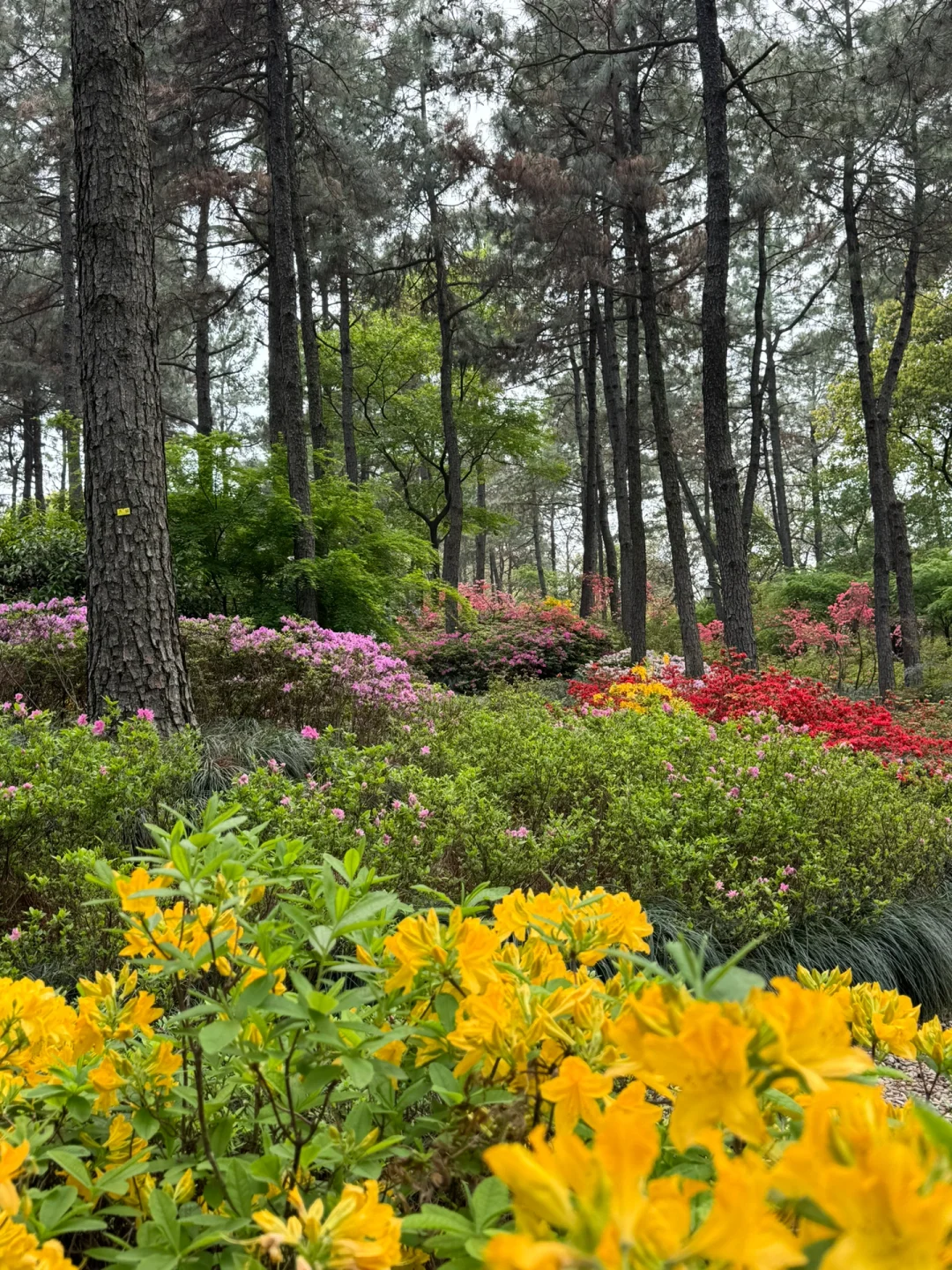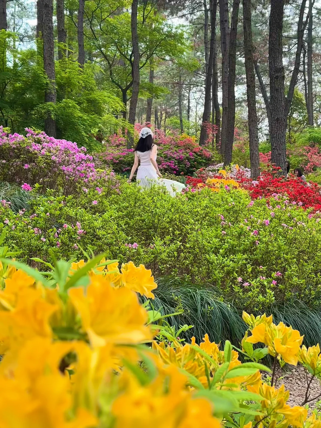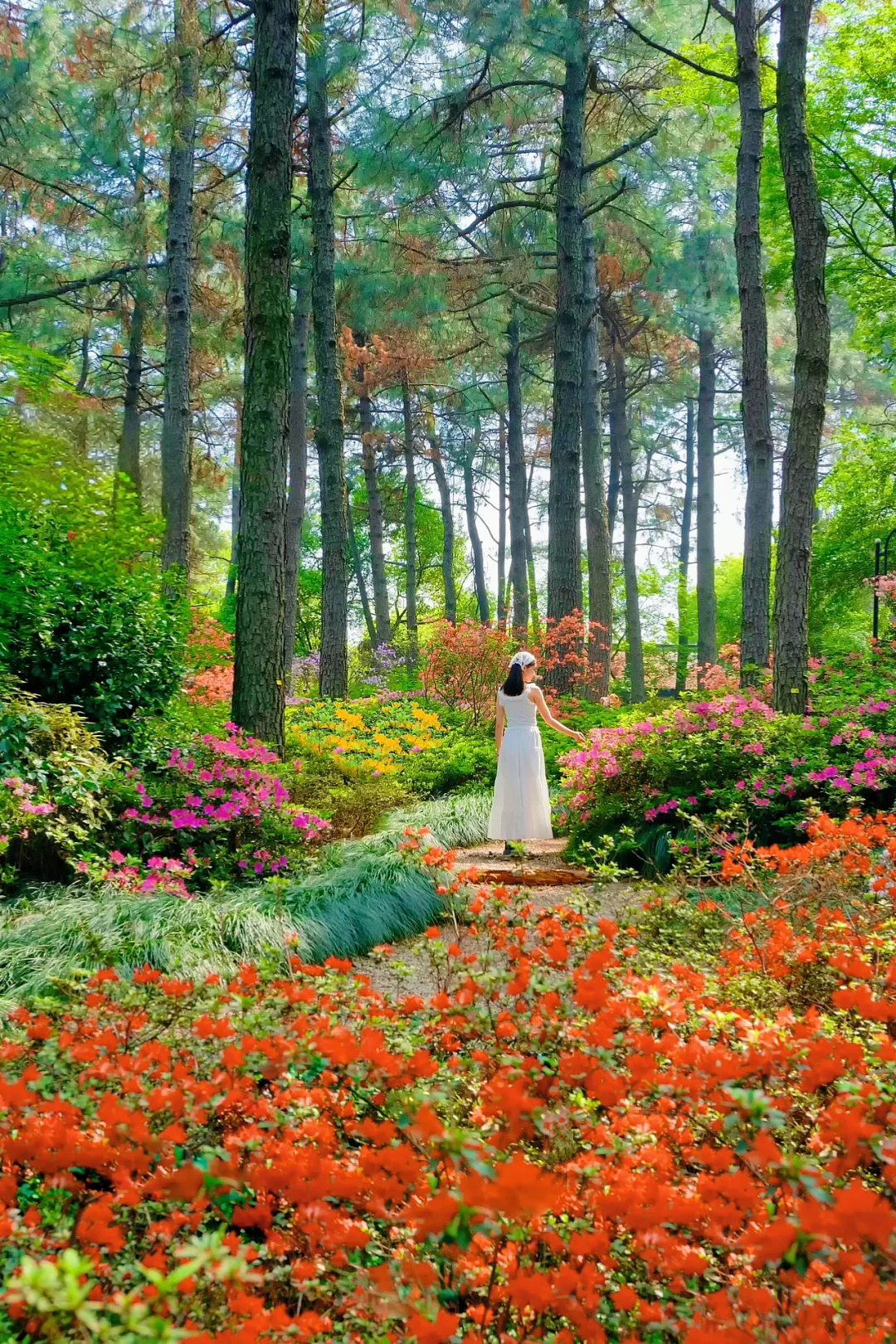 🌳杜鹃园:这是本次打卡的核心区域,3万平米的园子内300余种杜鹃肆意绽放 ,层层叠叠。漫步其中,仿佛置身于梦幻的童话世界,建议从高处往低处走,这样可以俯瞰整片花海,不同品种和颜色的杜鹃交织在一起,像一幅绚丽的织锦。