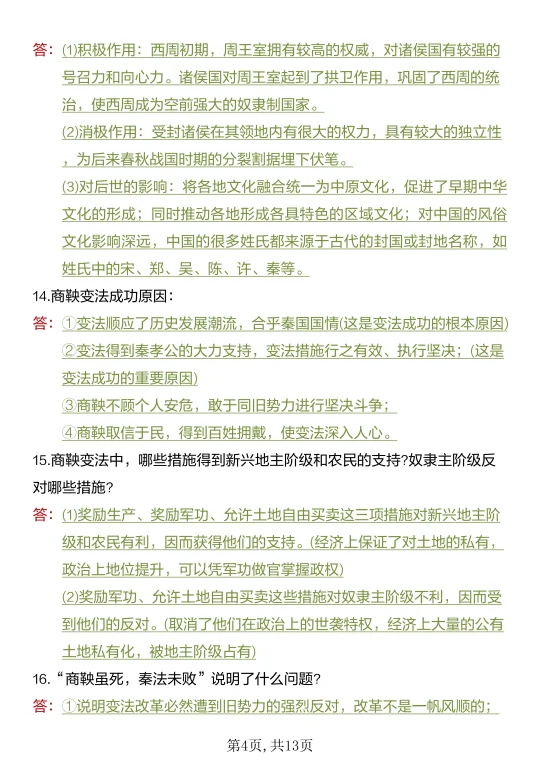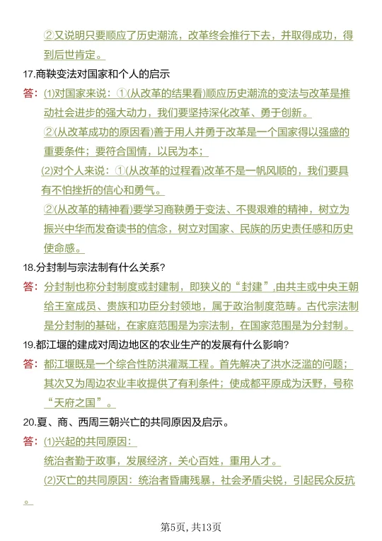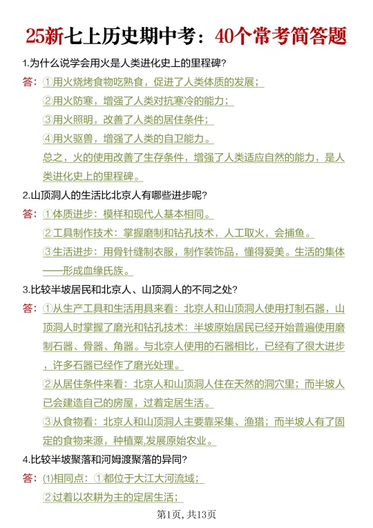 25新七上历史期中考:40道常考简答题