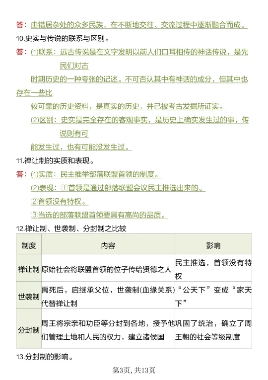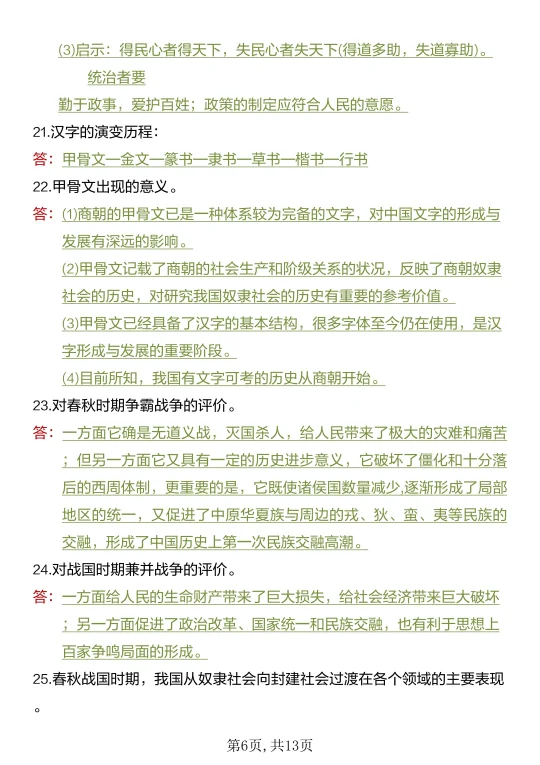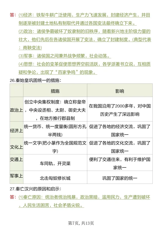 家长收藏孩子受益 知识点总结 七年级 七年级上册 七年级上册历史 初中历史 必背知识点 必考考点 初一 学霸秘籍期中复习期中考试提高孩子学习成绩