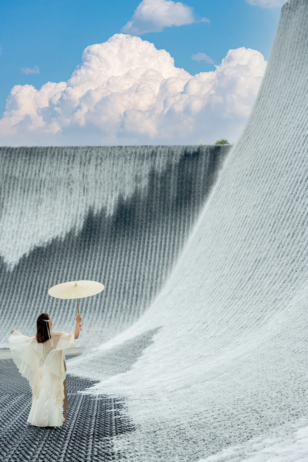 不输迪拜!跟着音乐流动的瀑布从云端倾泻而下,如梦似幻,仿佛走进了仙境,站瀑布边长焦拍摄被瀑布包围的既视感太震撼了