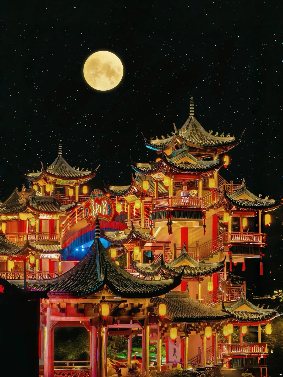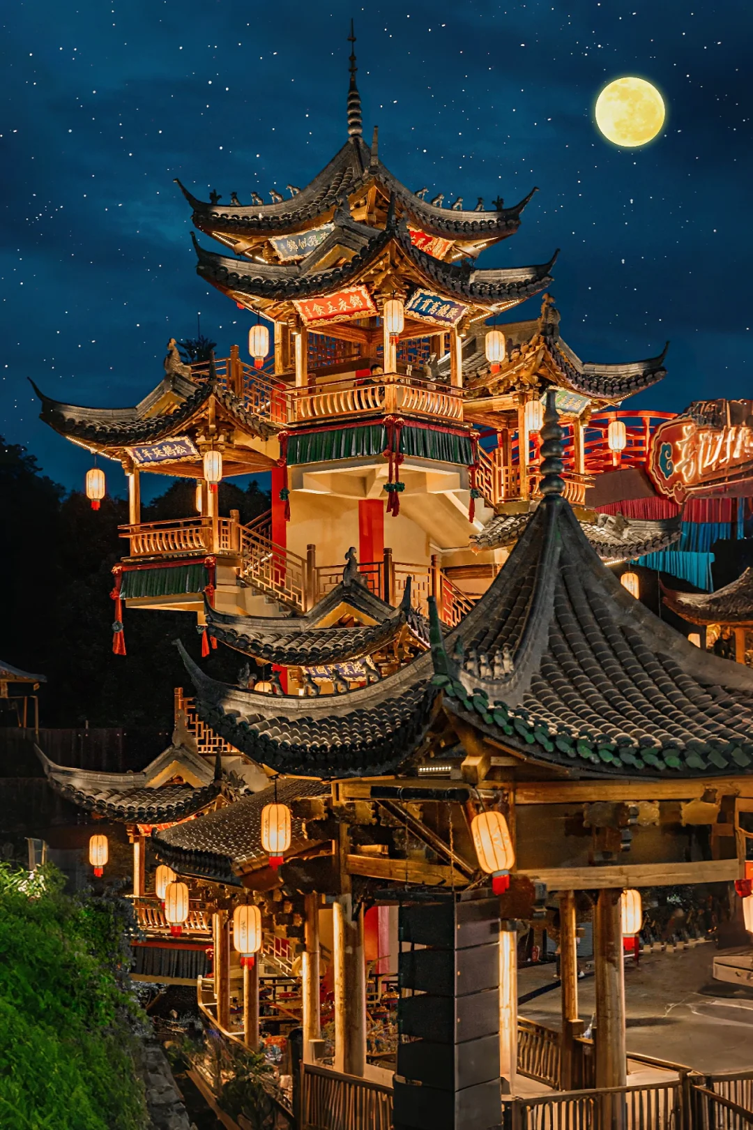 夜幕降临千灯亮起仿佛进入了仙侠世界,