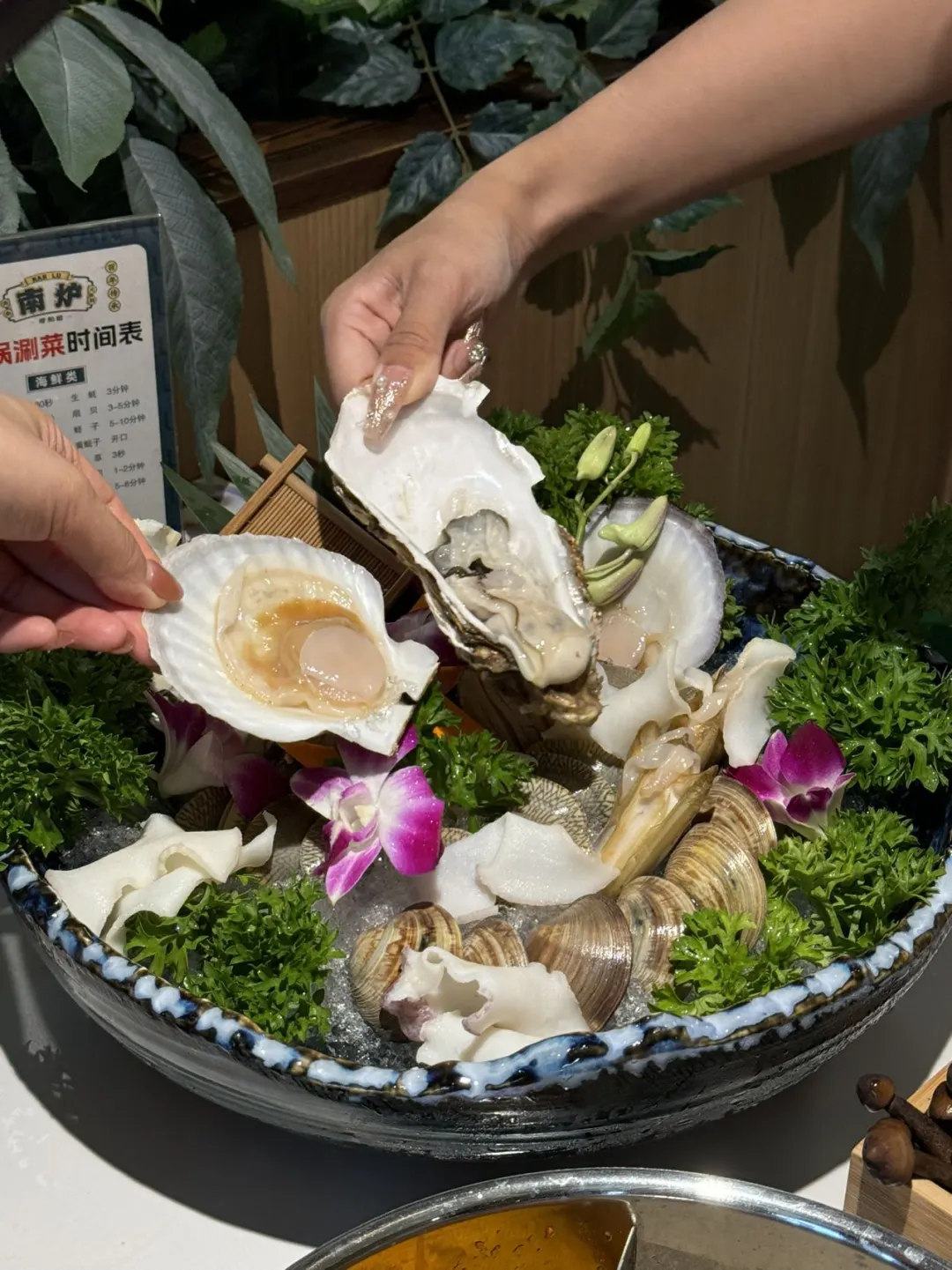 多少次来吴江就为了这家店 地道正宗的糟粕醋火锅真的很惊艳 锅底酸辣可口,涮什么都好吃 新鲜的文昌鸡入口鲜美多汁 浓郁入味,吃得出的品质很高 海鲜拼盘品类很多,一次可以吃到很多种 尤其喜欢扇贝,吃着软糯多汁 店里环境很有本地特色 仿佛在海岛度假,超级惬意!