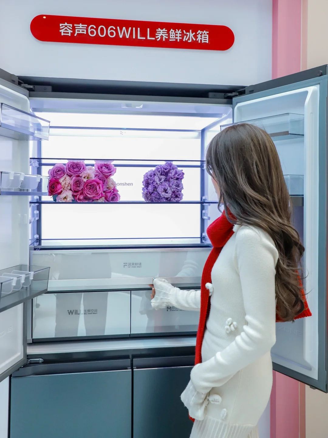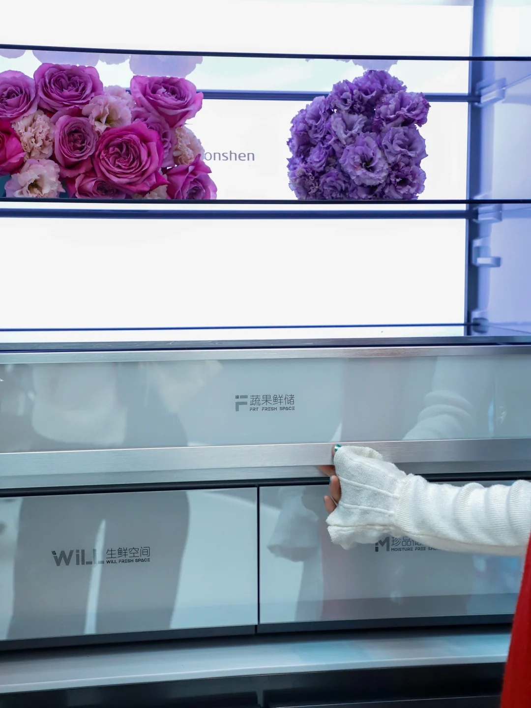 这个冰箱主打的就是WILL自然养鲜技术,就像是一个大庄园一样,各种水果蔬菜在它里面都能保持18岁的状态,永远让我们吃到它新鲜的一刻!就像是彩虹形成的原理一样,水、离子和光三者强强联手,让水果蔬菜继续光合作用供给营养,在七天内依旧保持新鲜👁~