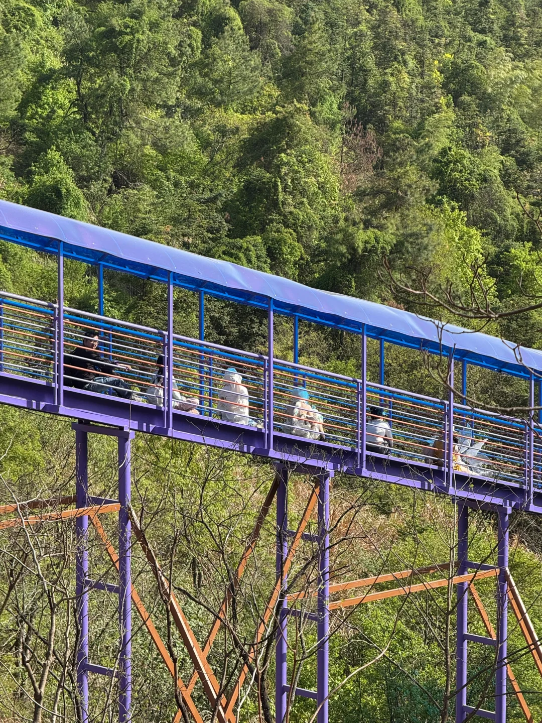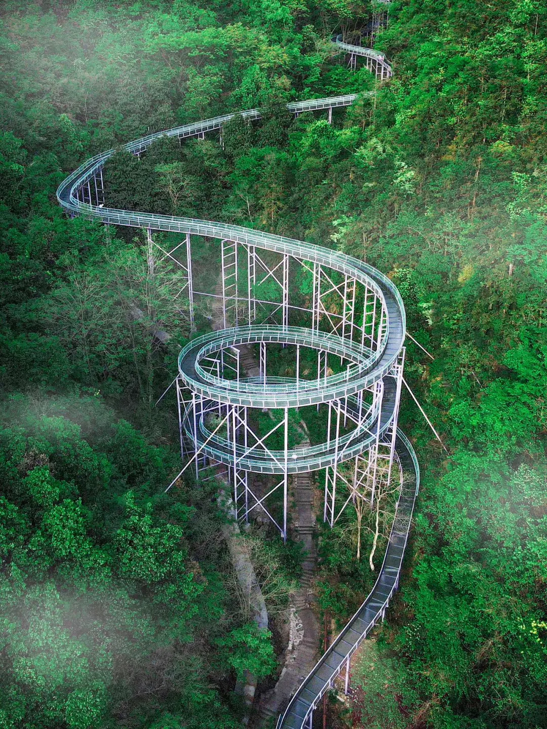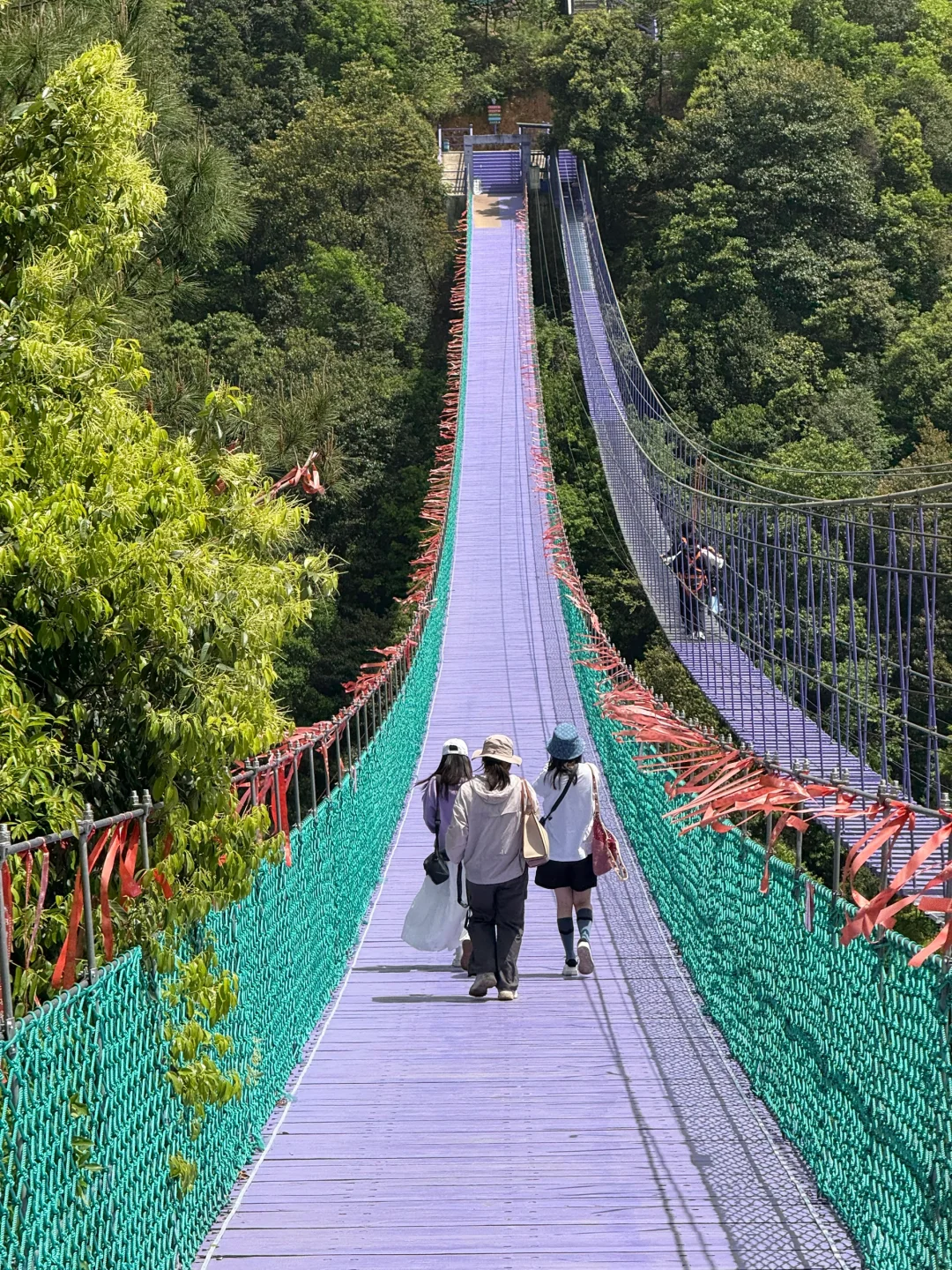 连接两座山巅的悬浮栈道!推荐挑战高空吊桥版本,300米镂空步道山风穿行,脚下是百米深谷,云端行走的刺激感无与伦比。