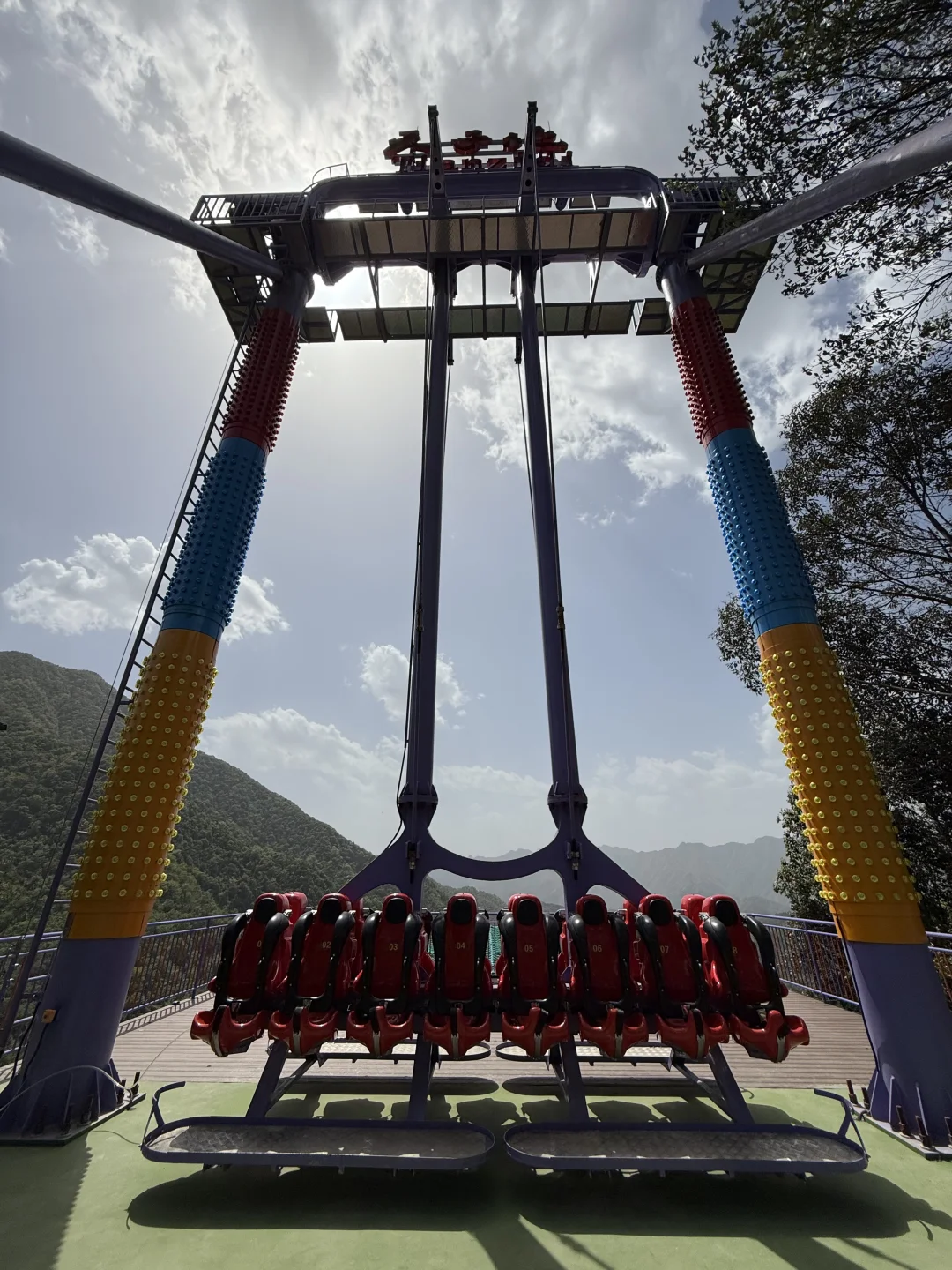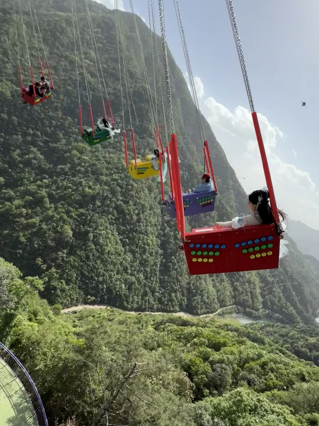 ✔️极速飞翔:悬空360°旋转,脚下就是悬崖,比过山车还刺激!