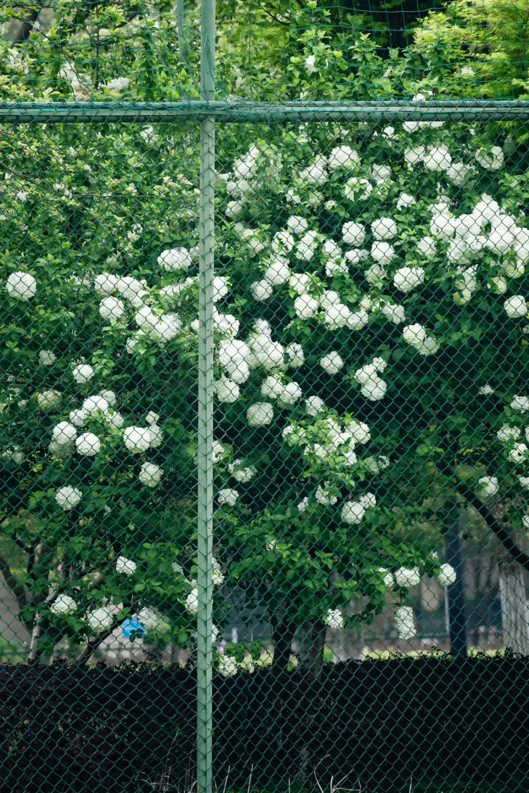 🌸公园里有一片小而精致的木绣球区域,绣球花墙搭配复古路灯和长椅 ,满满的法式浪漫。