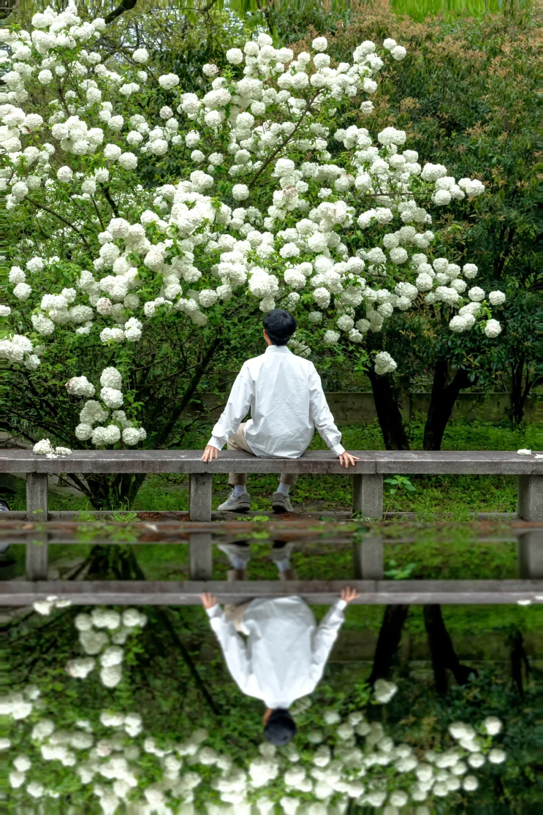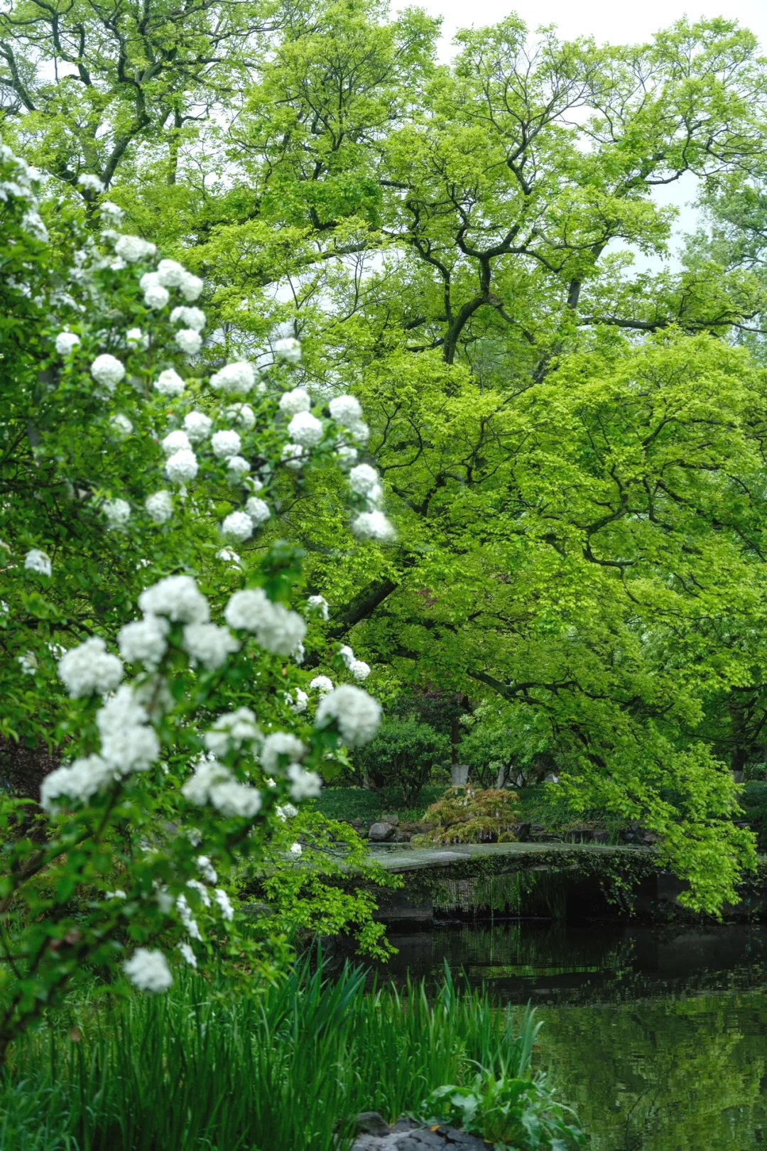 🌸卧虹桥边的木绣球树高大密集 ,站在桥边,以木绣球和古桥为背景,古风大片轻松拿捏。