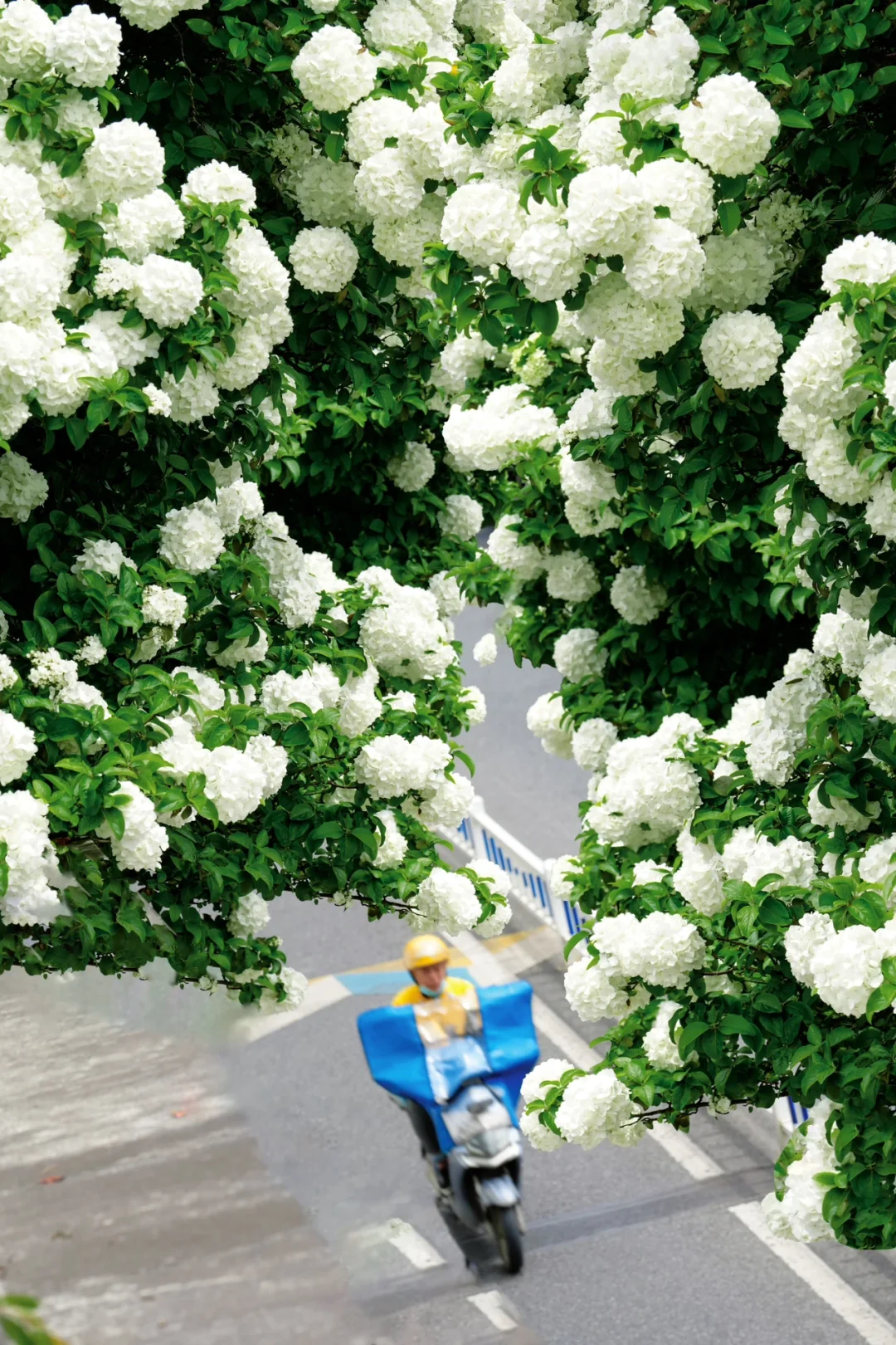 🌸火柿路的木绣球高大茂密,沿着水边肆意生长,拍出的照片自带春日大片感