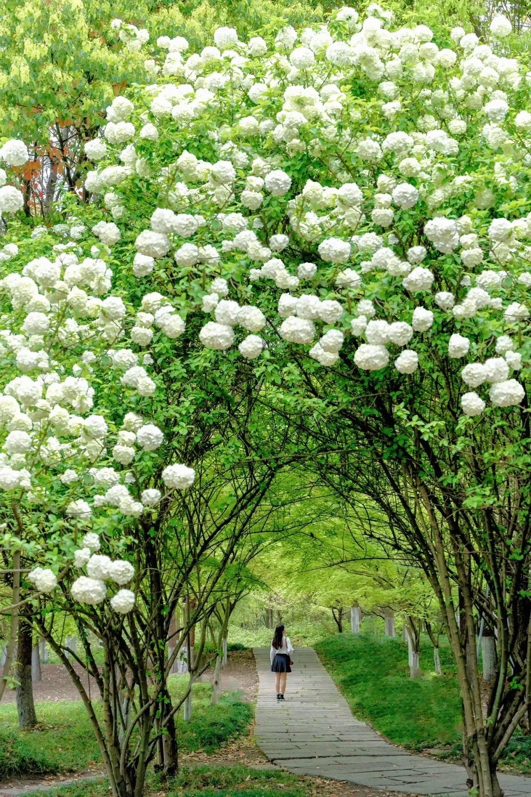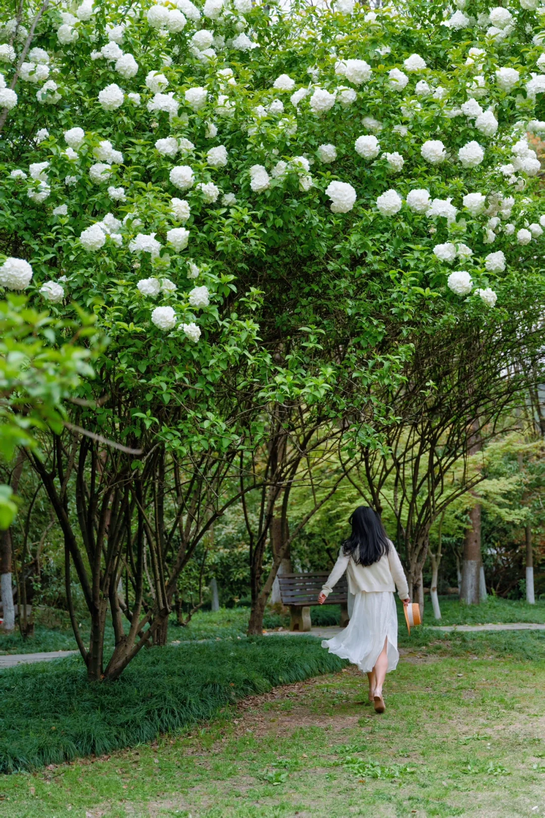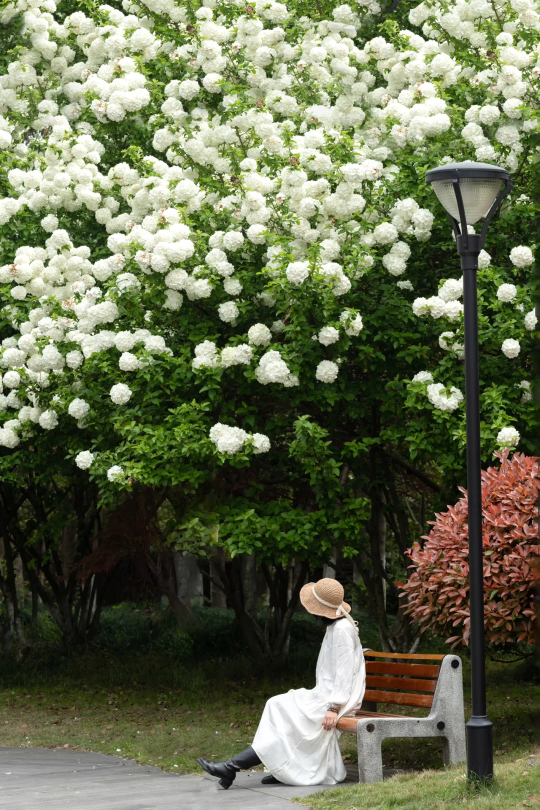 🌸绿堤的木绣球相对较矮,更适合拍近景人像。在绿意盎然的草坪和蜿蜒的小径旁