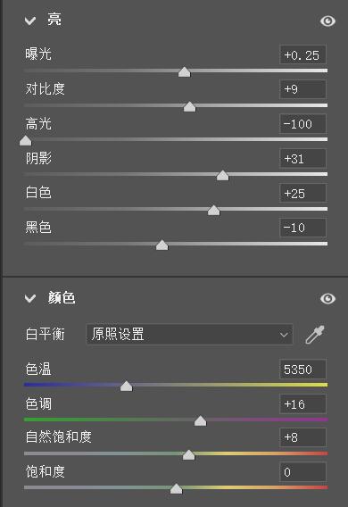 1. 曝光度:+0.25(适度提亮画面,保持自然感)