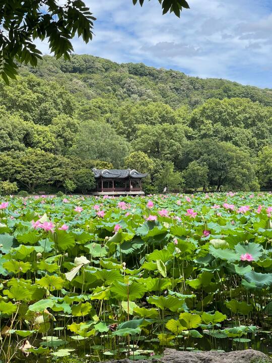 特点:作为杭州人赏荷最爱去的点位之一,曲院风荷的荷花和荷叶都茂盛得很,玉带桥是较好的拍摄点。