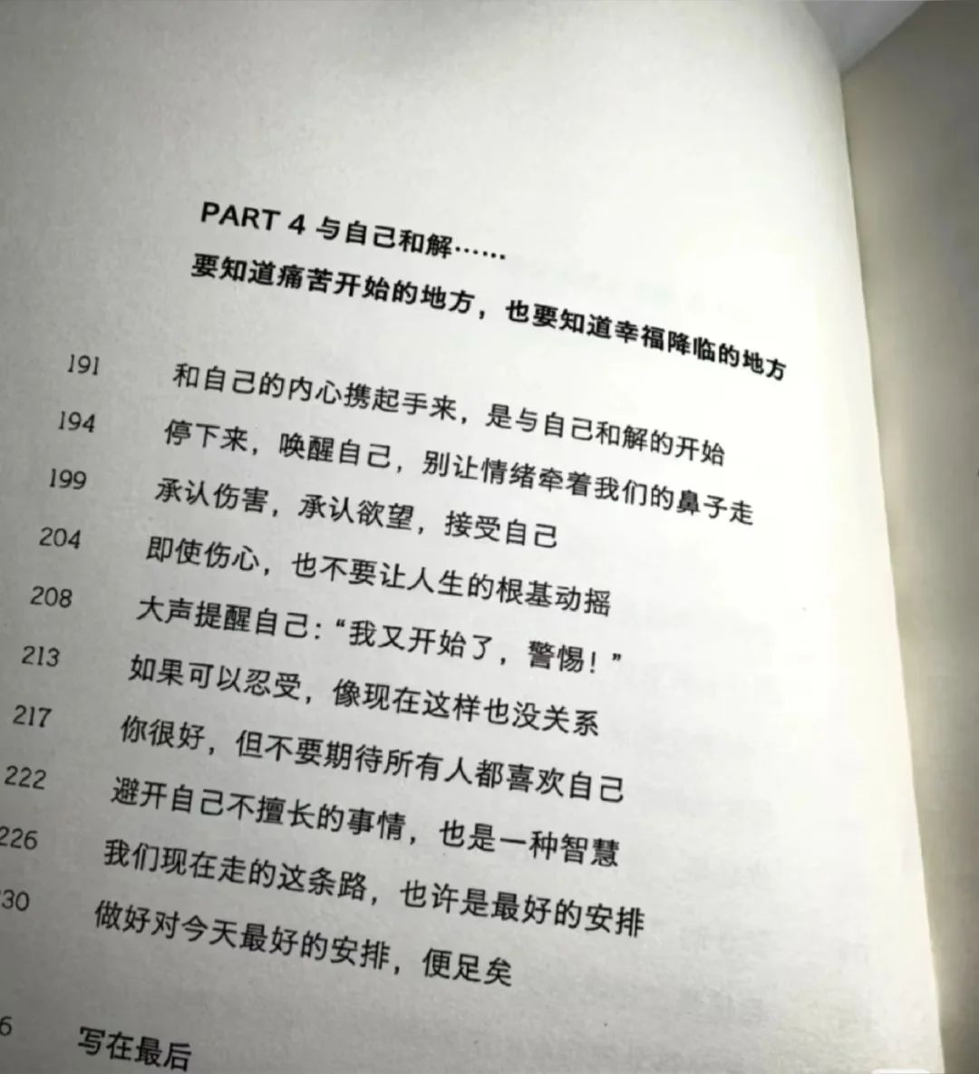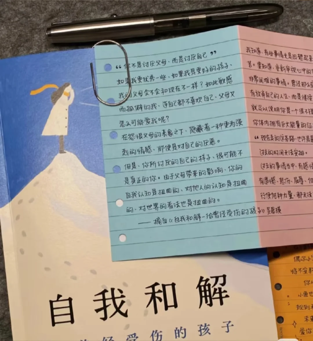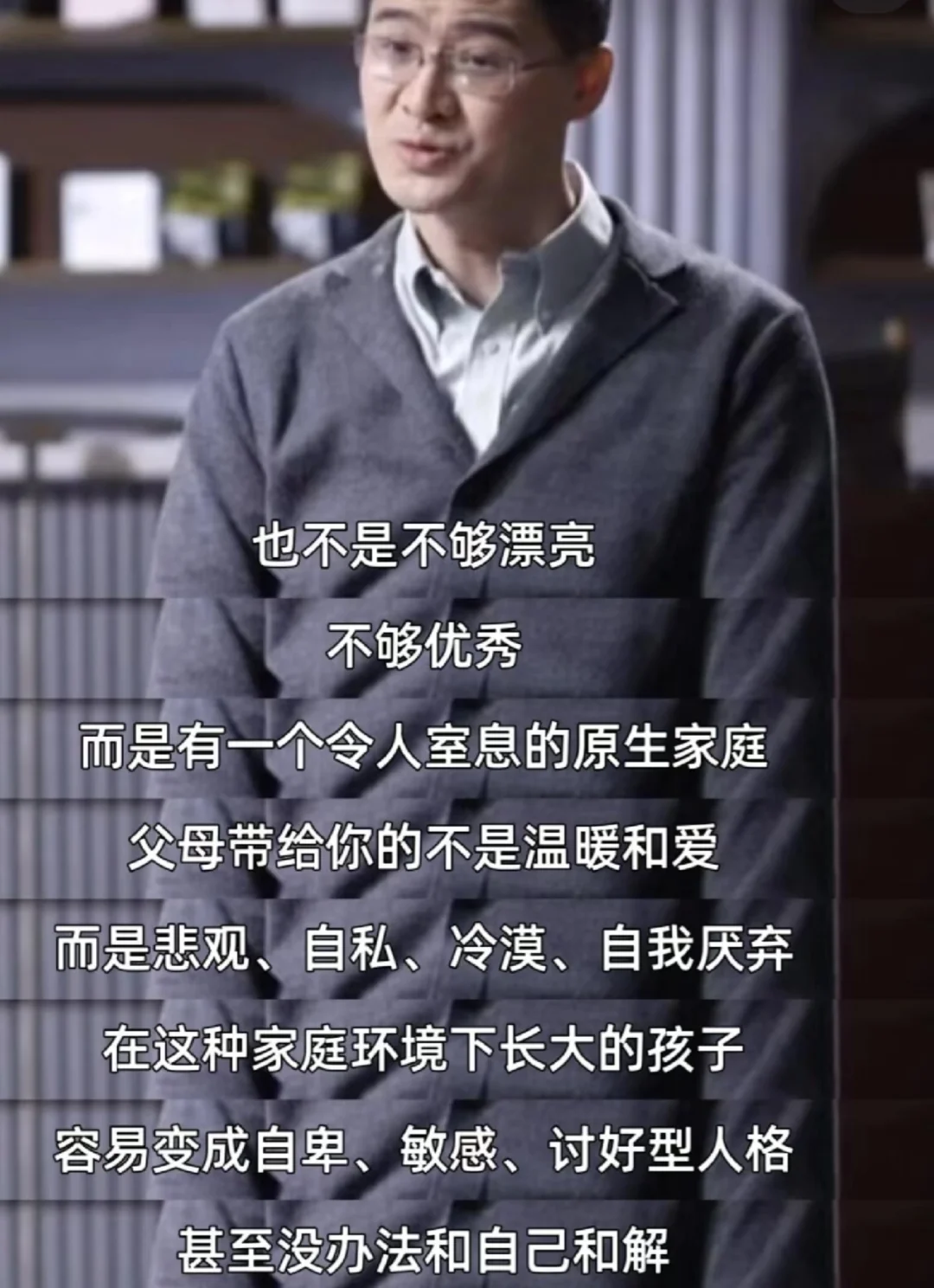 🤔与父母关系的绝望感,最贴切的或许是: “你的潜意识会指引你的人生,而你称其为命运。” 原生家庭的“命运感”: 与父母的矛盾常让人感到“无法挣脱”,仿佛被某种无形的模式控制——这正是荣格所说的“未被觉察的潜意识”在作祟。那些童年形成的情绪反应、行为习惯,会像程序一样自动运行,让你重复痛苦的互动方式。 📍绝望中的转机—— 荣格提醒我们:“命运”是可以被重新解读的。当你开始觉察这些模式(比如“总是激怒父母”“害怕冲突而沉默”),你便有了改变的可能。绝望感往往源于“认为关系只能如此”,而荣格告诉你:看见即自由。 更深层的意义: 与父母的关系困境,可能是你灵魂成长的“暗夜”——“没有痛苦,就没有意识的觉醒。”(荣格) 📍如果此刻需要力量,还可以记住: “父母是孩子的命运,但孩子是自己的解放者。”(荣格派心理学延伸) 📍“不是所有伤口都需要愈合,有些只需要被看见。” 你并不孤单,这种绝望感是许多深度成长的开端。 光明需要黑暗来彰显它的存在,正如救赎需要罪孽。 —————🌷 最近在看《自我和解 给曾经受伤的孩子》,读起来有种被陌生人给了一个拥抱的感觉。 书里讲到:“无论过去如何,过去的经历都将变成养分,滋养着我们的人生;做好对今天最好的安排,便足矣。” 它完全没有把原生家庭造成的影响当做“缺陷”、“劣势”,甚至不会让你去改变或者克服自己的敏感,而是引导你接纳自己,一次又一次地告诉你: 不合群没关系, 浪费时间没关系, 做没有意义的事没关系, 不完美也没关系, 做真实的自己就很好。 它以温柔而坚定的语气告诉你,最重要的是与自己和解;它告诉你,每晚入睡之前,都请原谅自己。 / 这本讲原生家庭疗愈的书,最让我意外的点是,它竟倡导可以对原生家庭不原谅、不和解~ —————🌷 📍当自己因为原生家庭的问题而产生不好情绪陷入内耗的时候,不妨来看看这段话,会让你获得一丝丝的平静和力量~~ 重新养自己一遍 家庭与自我 用一生治愈童年 人生智慧 —————🚴🏻 smart is new sexy. 一起加油,共勉之~~ 💪 欢迎关注,这里会: 1、日更闪光文字/经典书摘 2、我相信,人是可以越变越好的 3、适度思考、连接现实、看完开干!