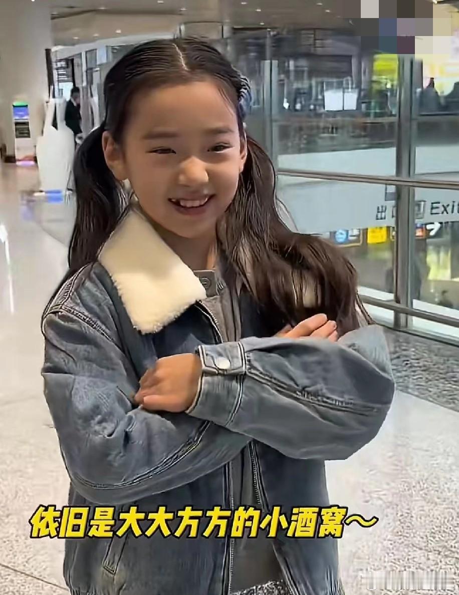 10月29日,9岁的小酒窝现身机场时,有路人问她最近有没有学新的舞蹈,小酒窝开心