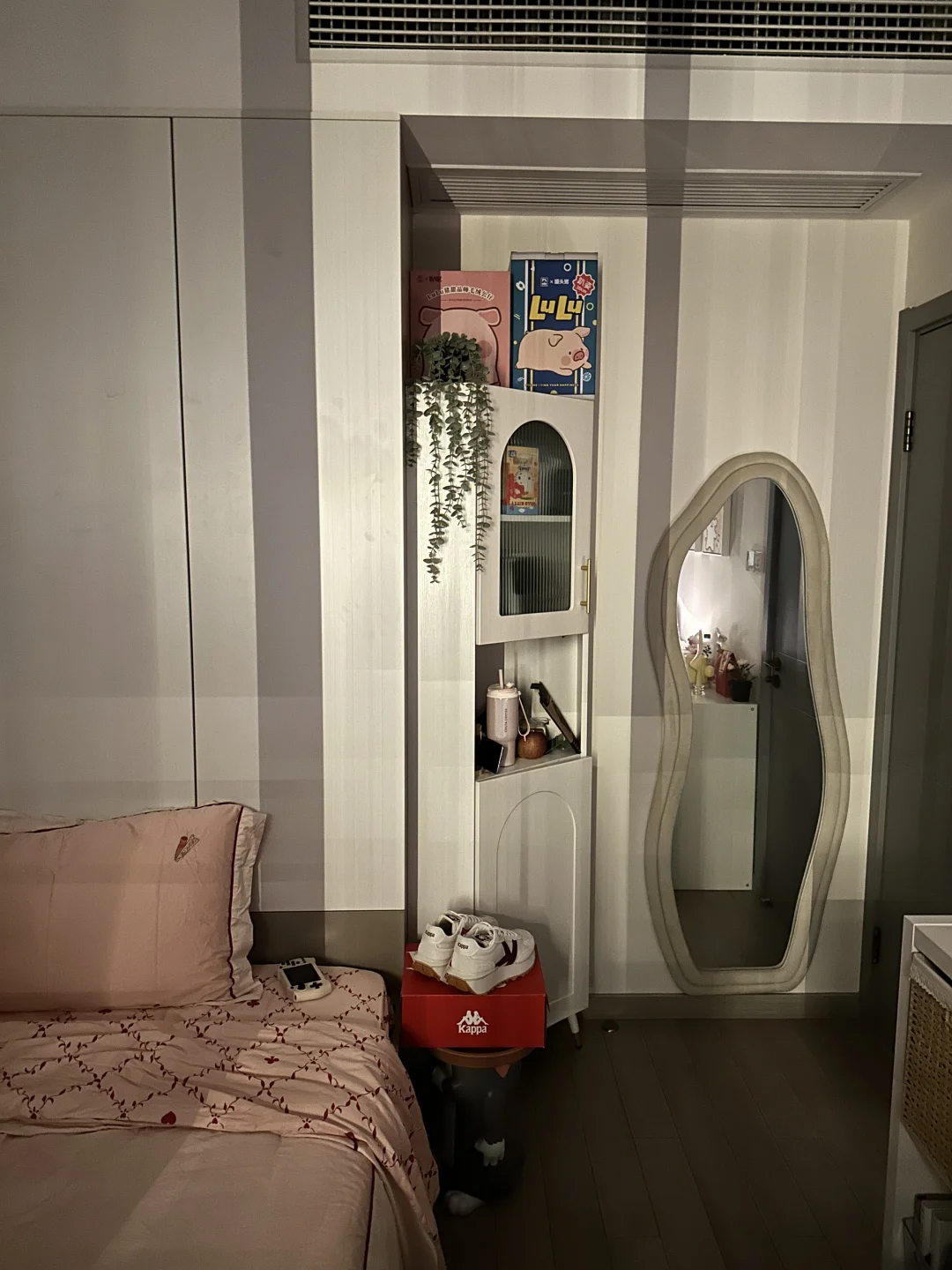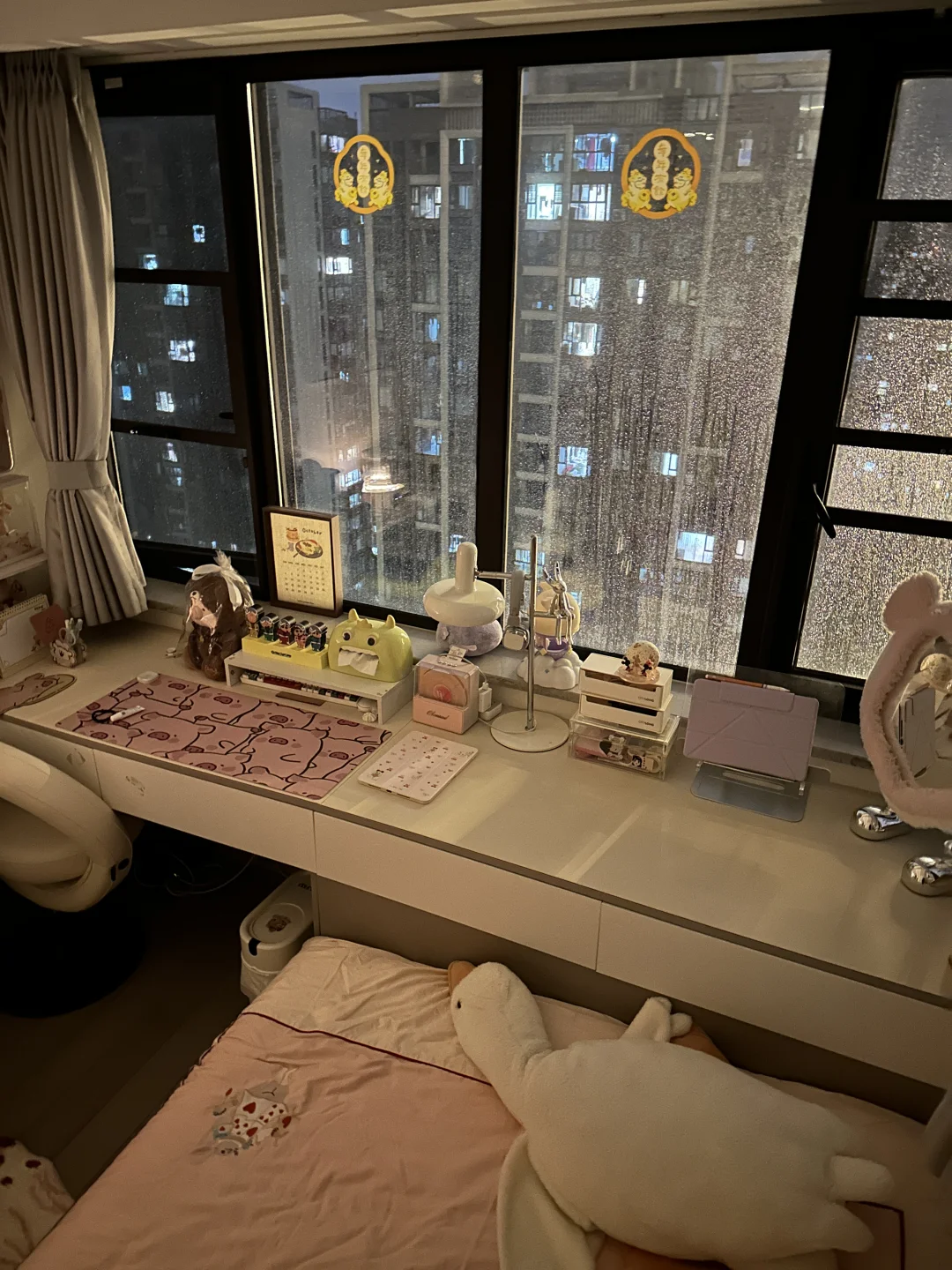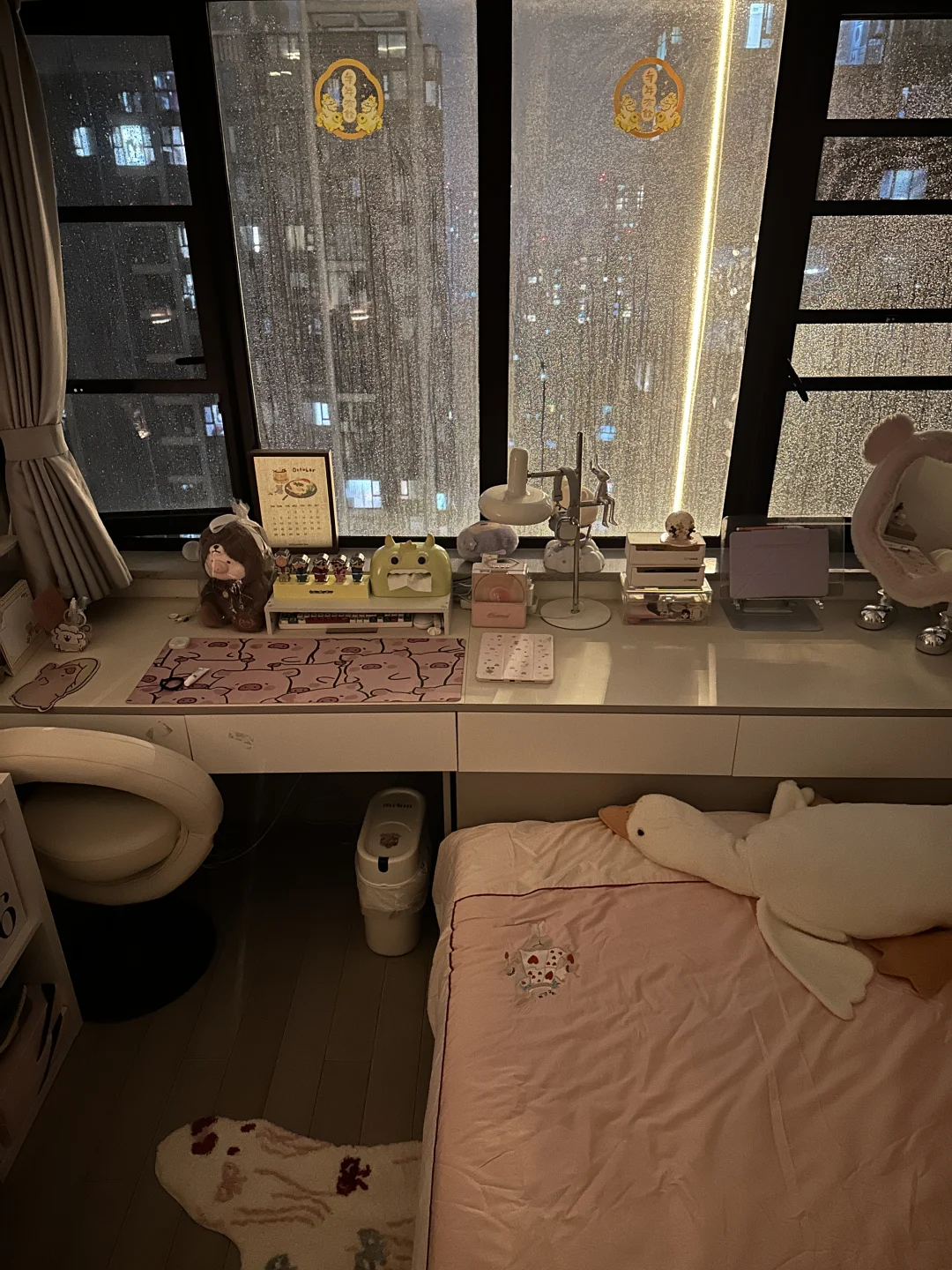 小卧室只有9平,我妈一开始想让我按照正常房间布局布置,我没同意,做了榻榻米的布局,床靠墙,书桌沿窗一阵排,既多出空间又方便活动,还在pdd上入了好多收纳实用好物,家里一天比一天温馨~