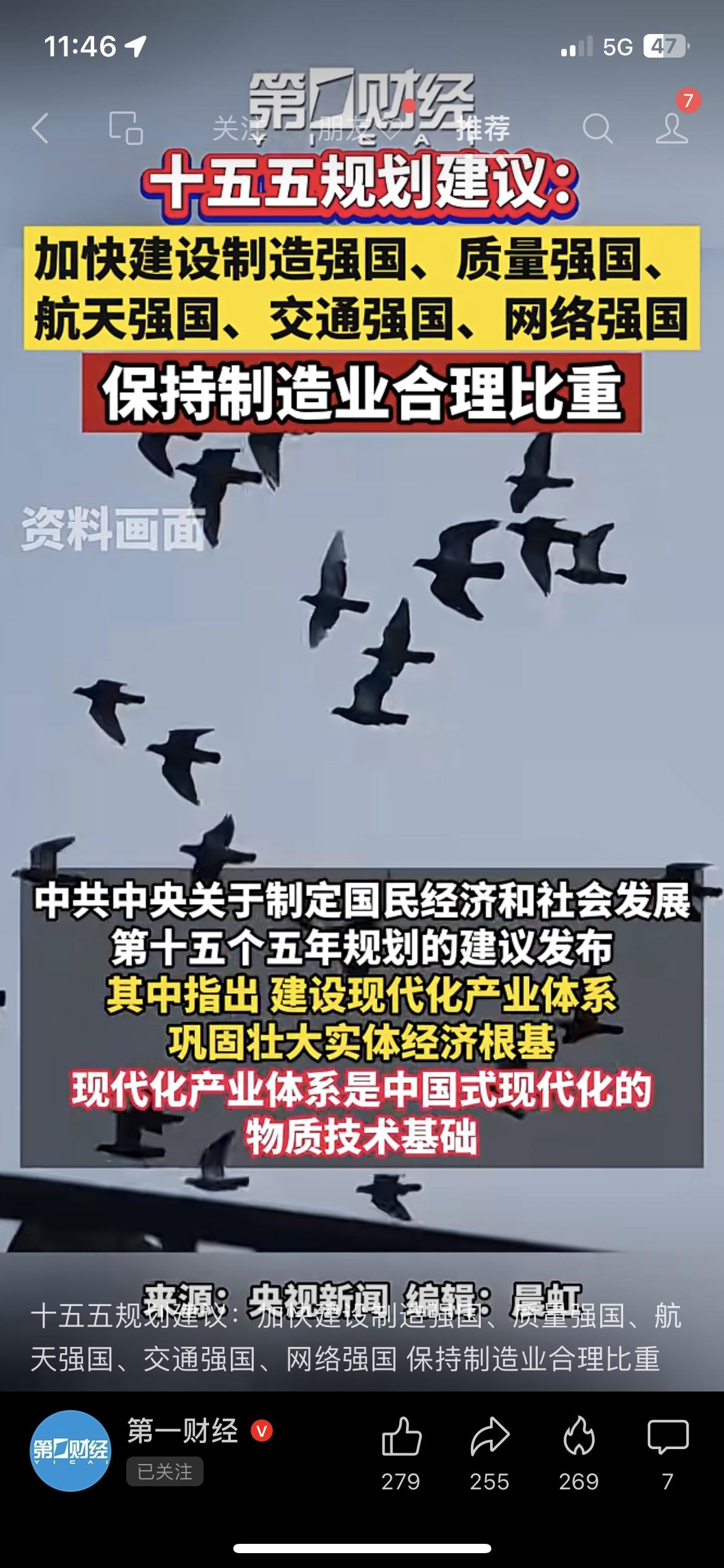 炸了!十五五要硬刚这5个强国! 十五五规划刚拍板:必须建成制造、质量、航天、交通、网络“五大强国”,制造业的饭碗直接焊死! 以后工厂全是机器人干活、高铁能跨城“半小时达”、航天卫星扎堆上天——咱打工人能蹭到高工资不? 你家那边制造业能先吃到红利不? 这是关系咱下一代的大事,赶紧甩给家人看!十五五规划纲要