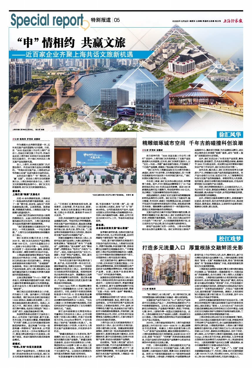 这样的文旅融合新图景在松江区处处可见:上海欢乐谷持续发挥主题乐园功能吸引国内外游客前来游玩;该区首家以“影视+人文生活方式”为定位的沉浸式高端精品酒店思特奇酒店正式对外营业;仓城历史文化风貌区保护与更新利用取得突破性进展;工业旅游点来伊份零食博物馆焕新升级……
