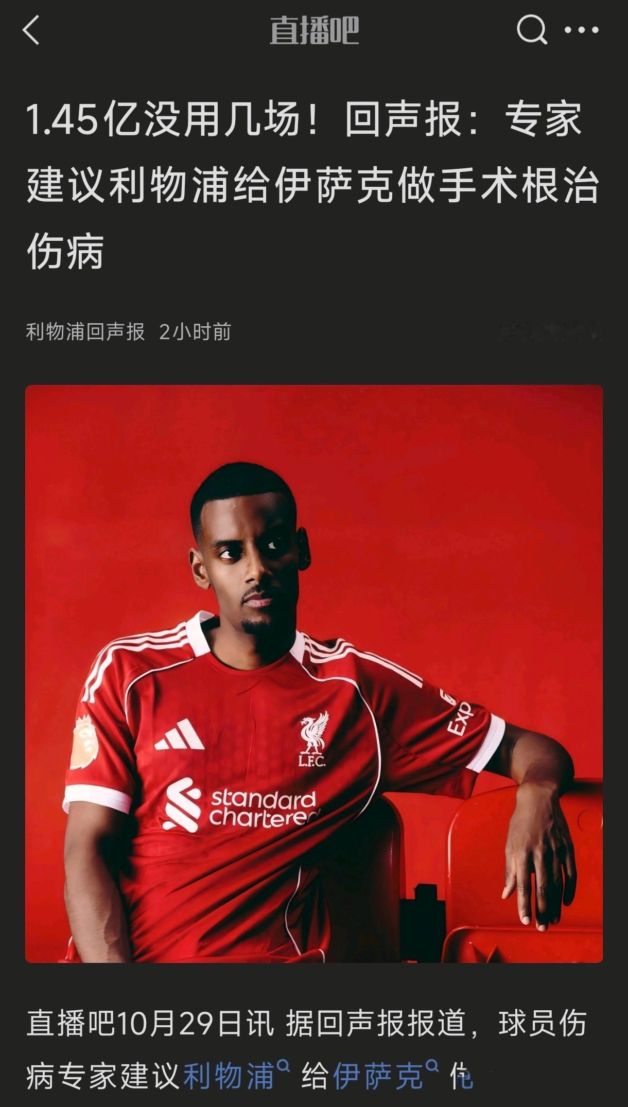 利物浦这下完蛋了,伊萨克这是有重伤?? 怪不得来球队,一直都保护出场,说是夏天没跟球队合训,让伊萨克慢慢来。 那人家谢什科也是最后时候去曼联,还不是场场都上。 说明利物浦知道他有伤,怕用坏了。 这下纽卡斯尔球迷彻底释怀了,谢谢利物浦,给钱送走队霸,再谢利物浦![可怜]
