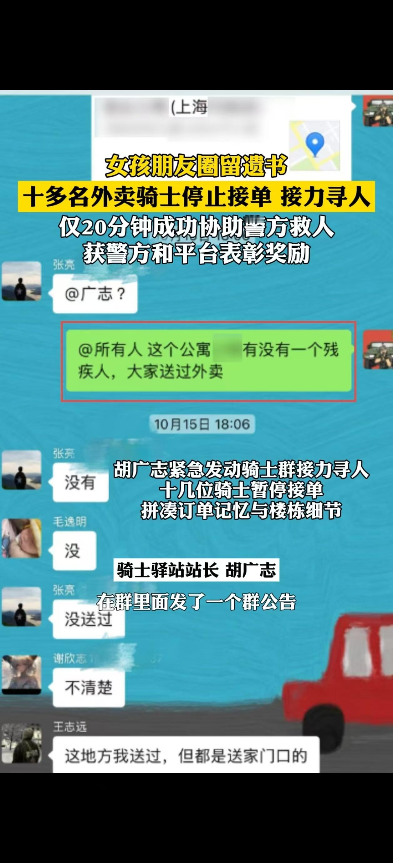 十余名外卖小哥接力帮寻轻生女孩这些穿梭在夜色里的普通外卖小哥,用一场紧急接力,拉