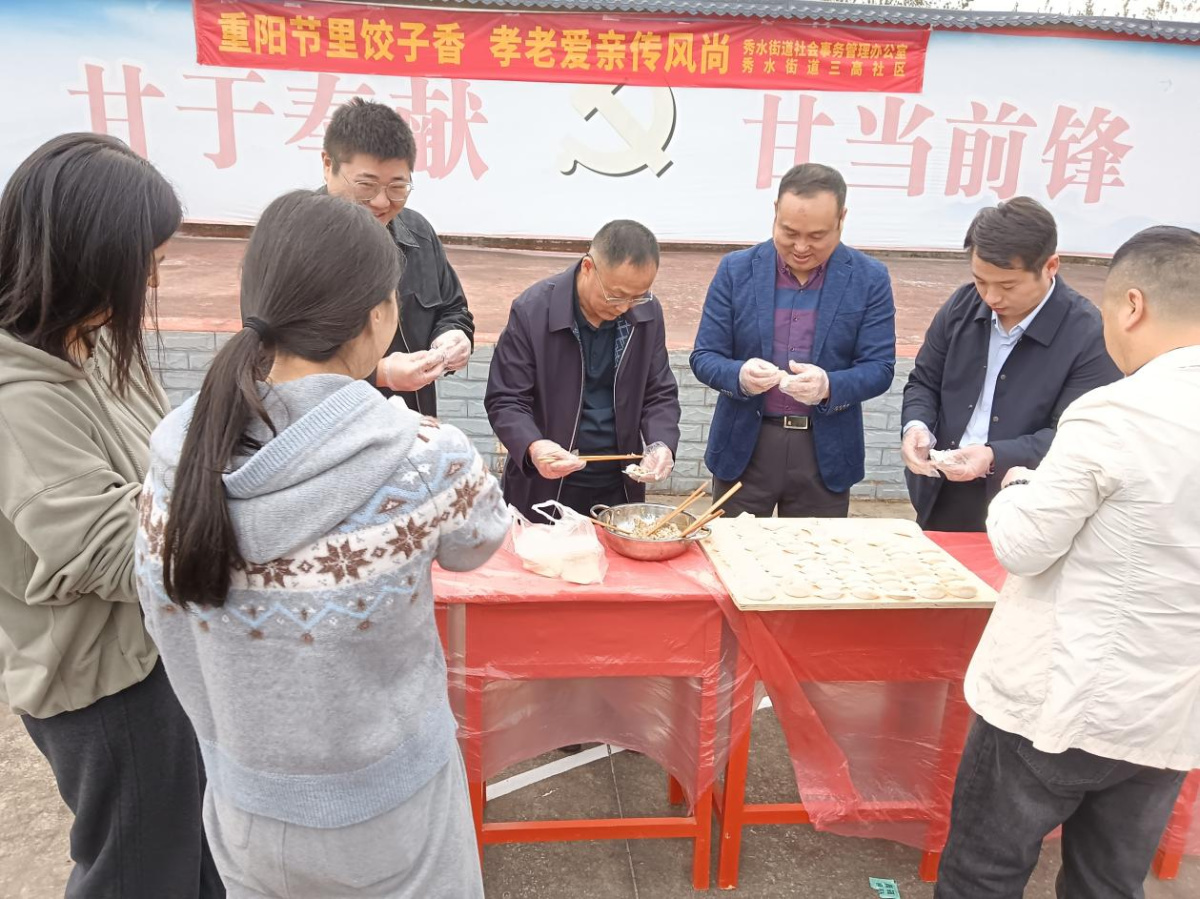当天下午,秀水街道办社会事务管理办公室又联合三高社区居民委员会(下称“三高社区居委会”),在社区广场开展“重阳节里饺子香孝老爱亲传风尚”饺子宴送温暖慰问活动。活动专门邀请社区内的孤寡老人、空巢老人、高龄老人等群体参与,志愿者与社区工作人员一同和面、调馅、包饺子,用一碗碗热腾腾的饺子,向老人们传递节日的关怀与社区的温暖;同时,工作人员还为辖区困难群众送去棉被等生活物资,切实解决他们的实际需求。