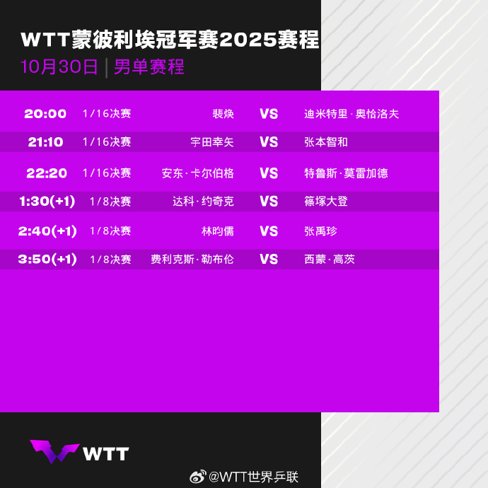 20:00 男单1/16 奥恰洛夫VS裴焕