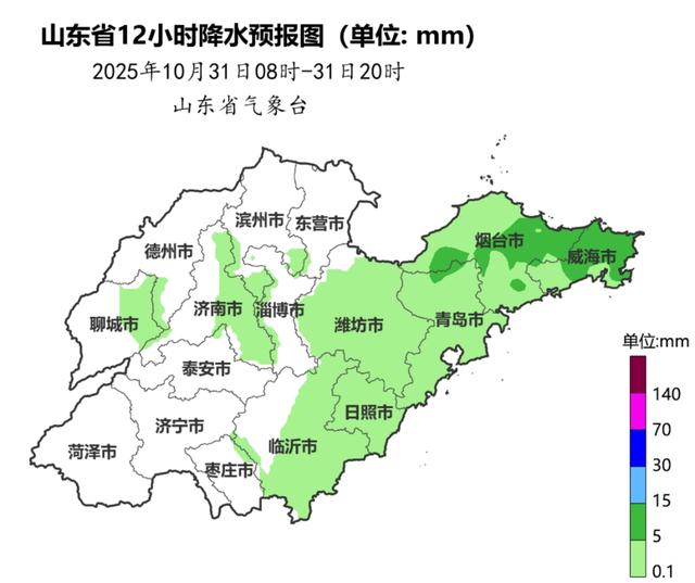 30日夜间到31日白天,潍坊、日照和半岛地区天气阴有小到中雨局部大雨转晴,其他地区天气阴有小雨转晴。半岛地区南风3~4级转北风4~5级阵风6级,鲁西北和鲁中地区北风3~4级,其他地区南风转北风3~4级。