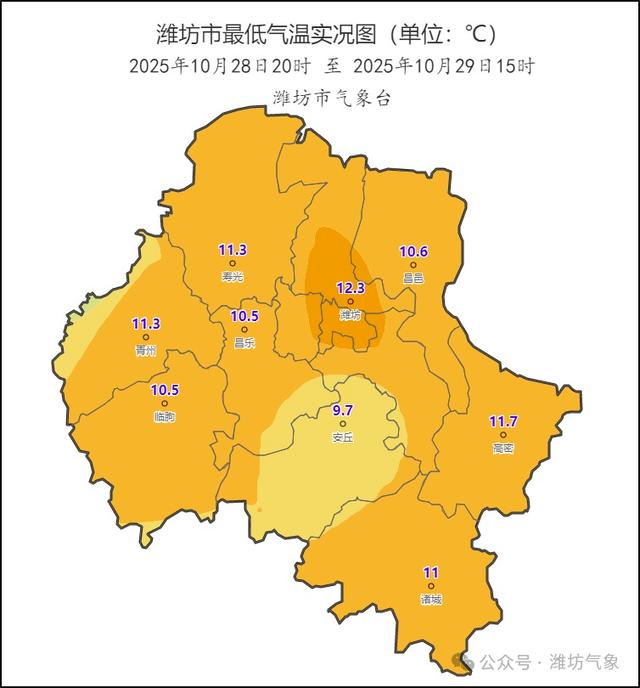 最低气温:鲁中山区和半岛地区9℃左右,其他地区11℃左右。