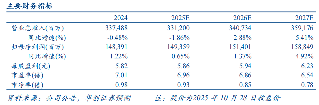 价值银行优势巩固。1)零售财富护城河深厚,规模和客户增速均高于一般贷款和总贷款增速。公司持续深化零售客户经营,截至三季度末,管理零售客户总资产(AUM)余额16.6万亿,较年初增长11.19%;金葵花及以上客户数578.12万户,较年初增长10.42%,私人银行客户数较年初增13.2%,高价值客户基础持续夯实。2)子公司合计资管规模达4.59万亿。其中招银理财理财产品余额2.54万亿元,较上年末增长2.83%;招商基金资管业务规模1.59万亿元,较上年末增长1.27%;招商信诺资管资管业务规模3,056.69亿元,与上年末基本持平;招银国际的资管业务规模1,562.90亿元,较上年末增长19.92%。