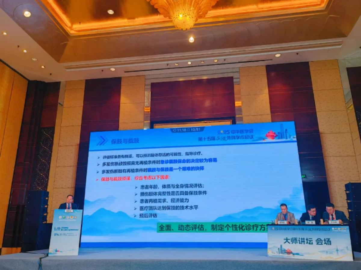 作为中华医学会显微外科分会常务委员,侯建玺院长受邀在大师讲坛担任学术主持,并讲授了《肢体严重创伤救治与组织修复策略》的课题。