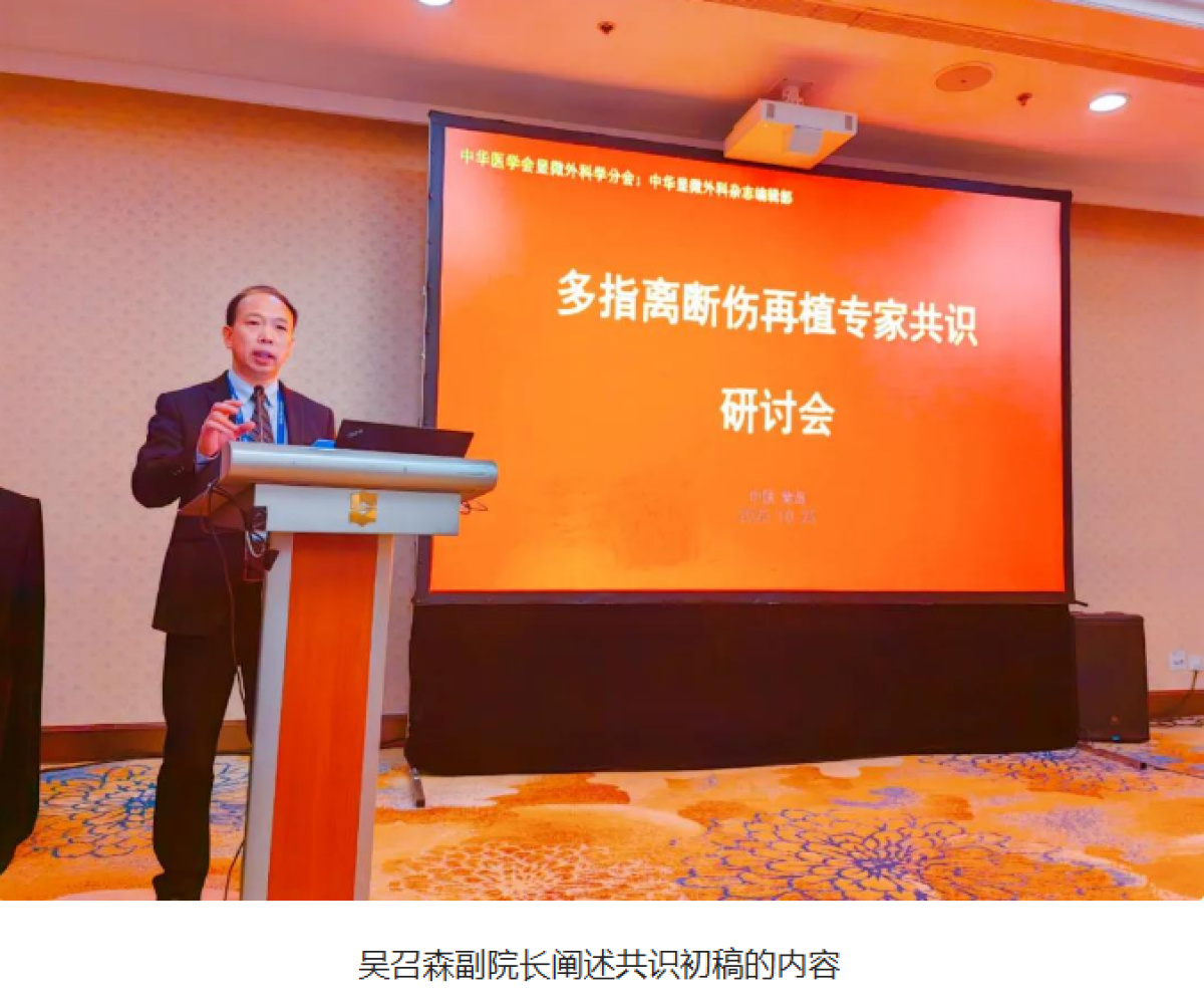 本次研讨会,汇聚了顾立强教授、徐永清教授、崔树森教授、汪华侨教授以及侯建玺院长等30余位显微外科的资深专家,吴召森副院长受邀担任研讨会的主持并阐述共识初稿的内容。