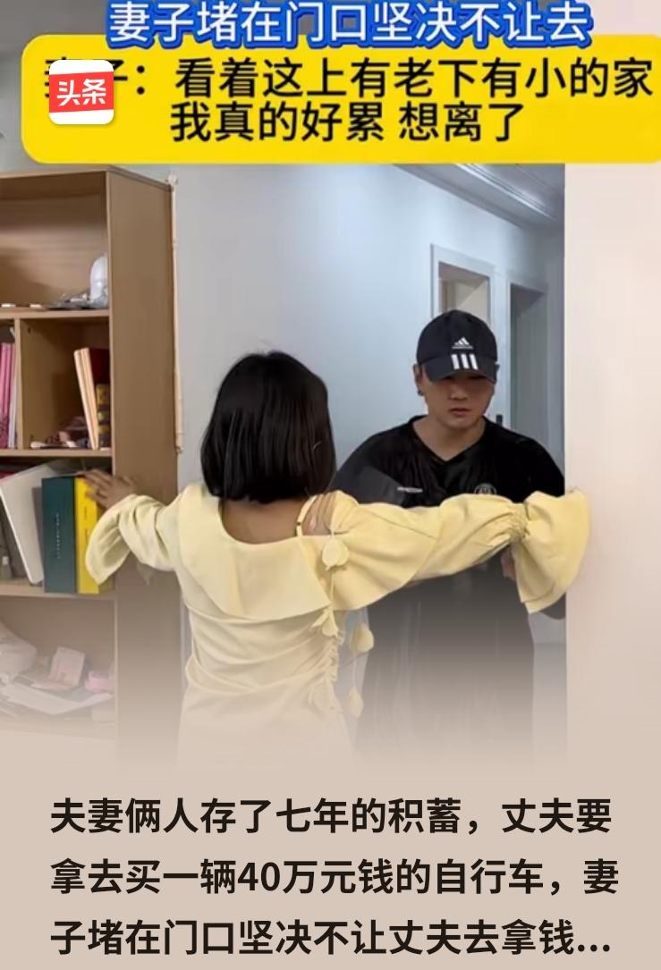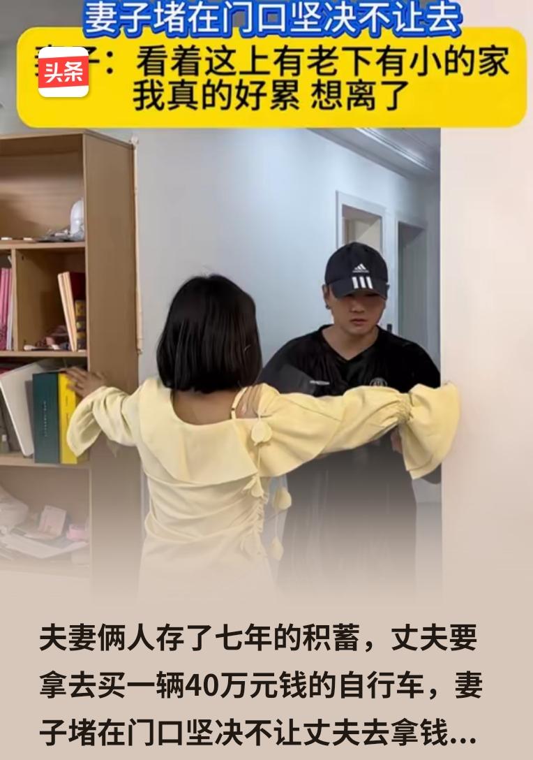 真的惊掉下巴! 夫妻省吃俭用攒了七年的钱, 丈夫居然一声不吭要拿去买辆40万的自行车,妻子拦着还理直气壮说“花自己的钱”? 家从来不是一个人的独角戏啊!上有老要赡养,下有小要抚养,每一分积蓄都是日子的底气,哪能凭着一己私欲就挥霍?所谓夫妻同心,不是嘴上说说,而是重大决定前愿意坐下来商量,顾及对方的感受。这种眼里只有自己爱好,完全无视家庭责任的行为,比没钱更伤感情。 婚姻的本质是互相迁就、彼此成全,不是单方面牺牲。换作是你,会同意伴侣拿全家七年积蓄满足个人执念吗?