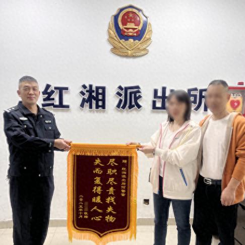 “真的太感谢你们了!这些首饰对我们来说太重要了!”10月27日肖女士和段先生将一面锦旗“尽职尽责找失物,失而复得暖人心”送到湖南省衡阳市公安局蒸湘分局红湘派出所,紧紧握着民警的手连声道谢。