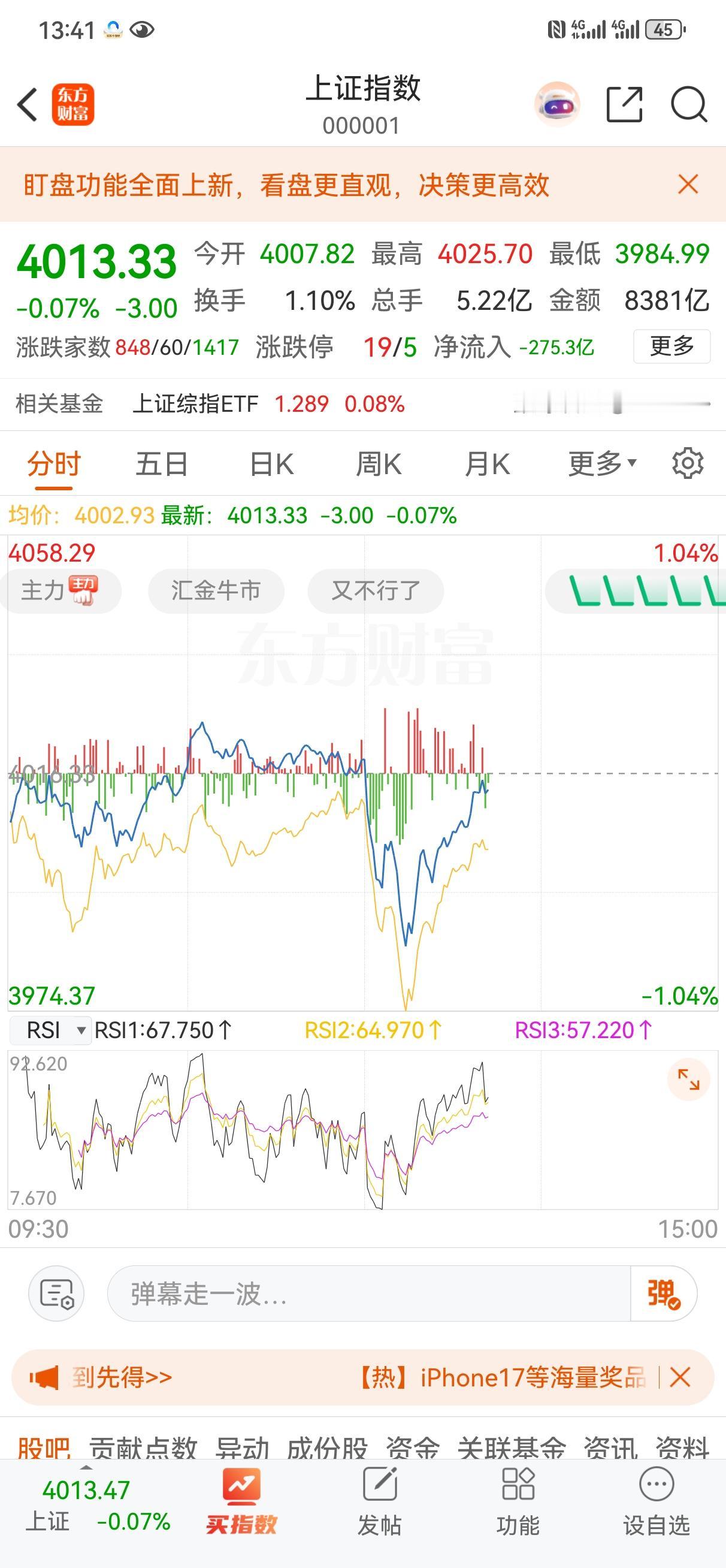 今天这是不让跌啊,刚谈完是不是需要做一下形象管理我不清楚,但是指数是回来了,个股回来了没有,关键是明天呢?我绝不是唱空,我一直坚定看好A股,而且我认为上升周期会很长,但这并不妨碍我短线防范风险,当然我也从不建议空仓,因为我觉得就算调整也是上升途中的调整,这个观点说了好多遍,没有大的风险,只是不建议追高,不建议新进,仅此而已!