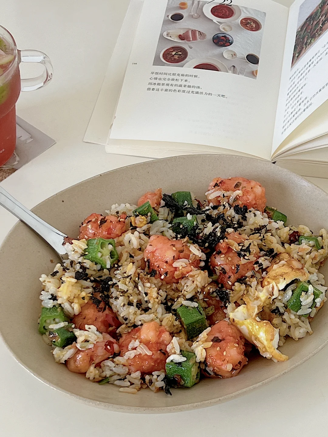 ✨虾滑煮熟,秋葵加点盐煮熟,