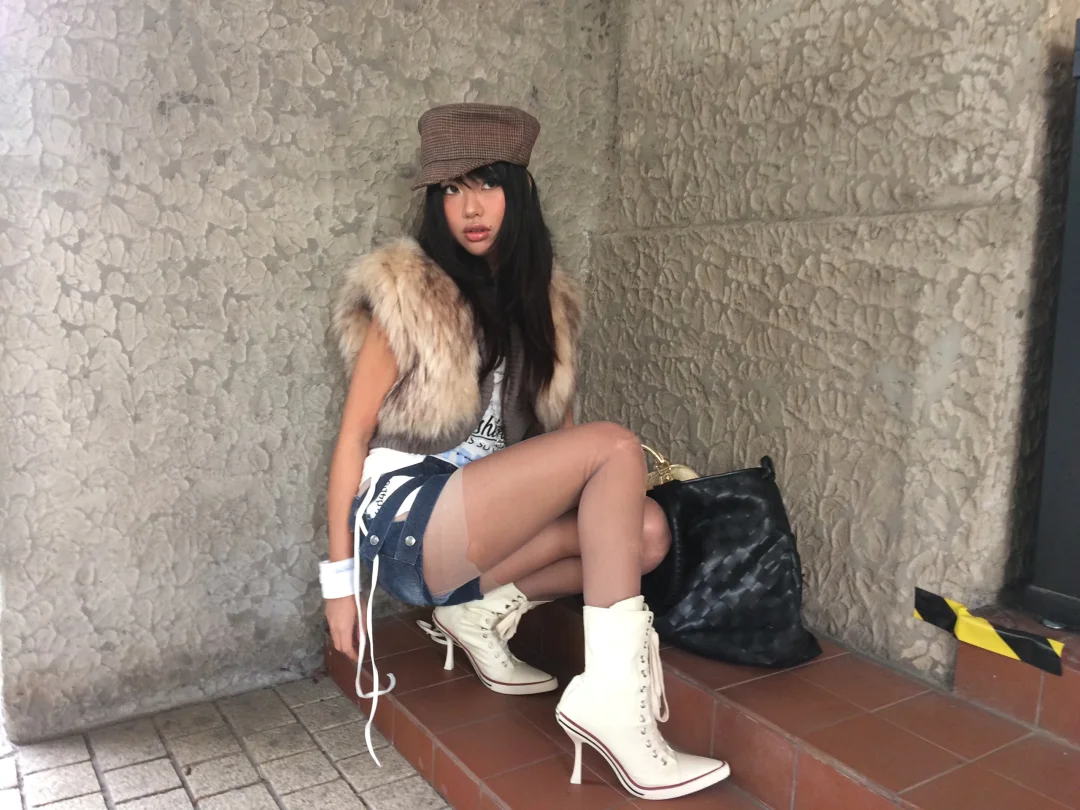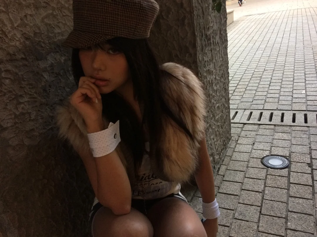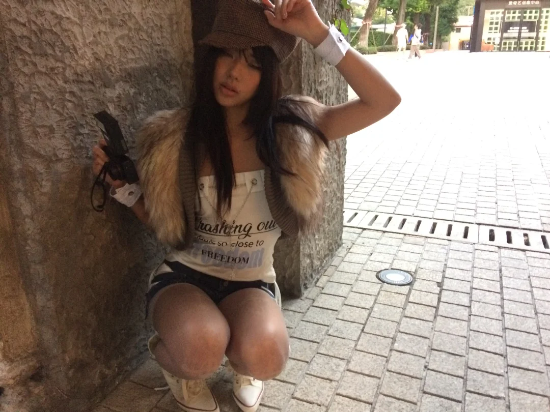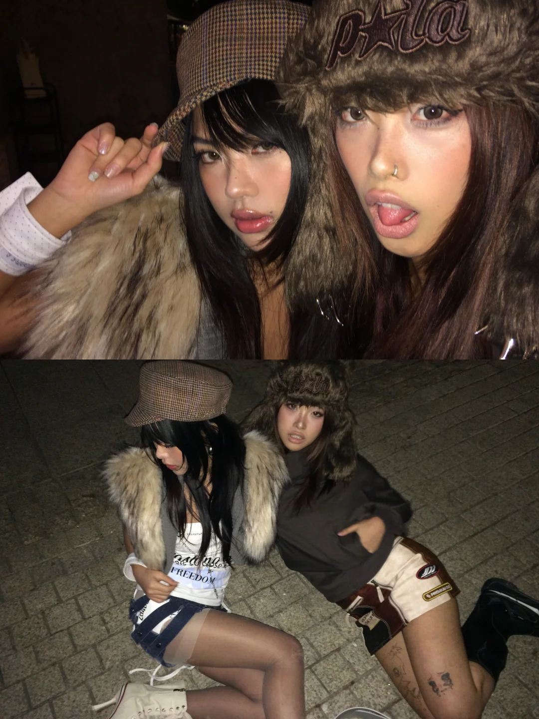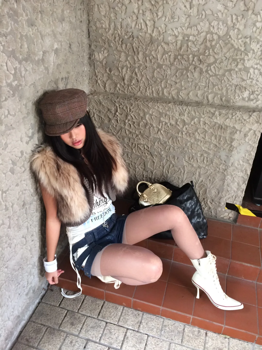 那天和ema不约而同穿的很搭👭🏽 趁温度还可以容我开个小差穿无袖皮草定格在2000s
